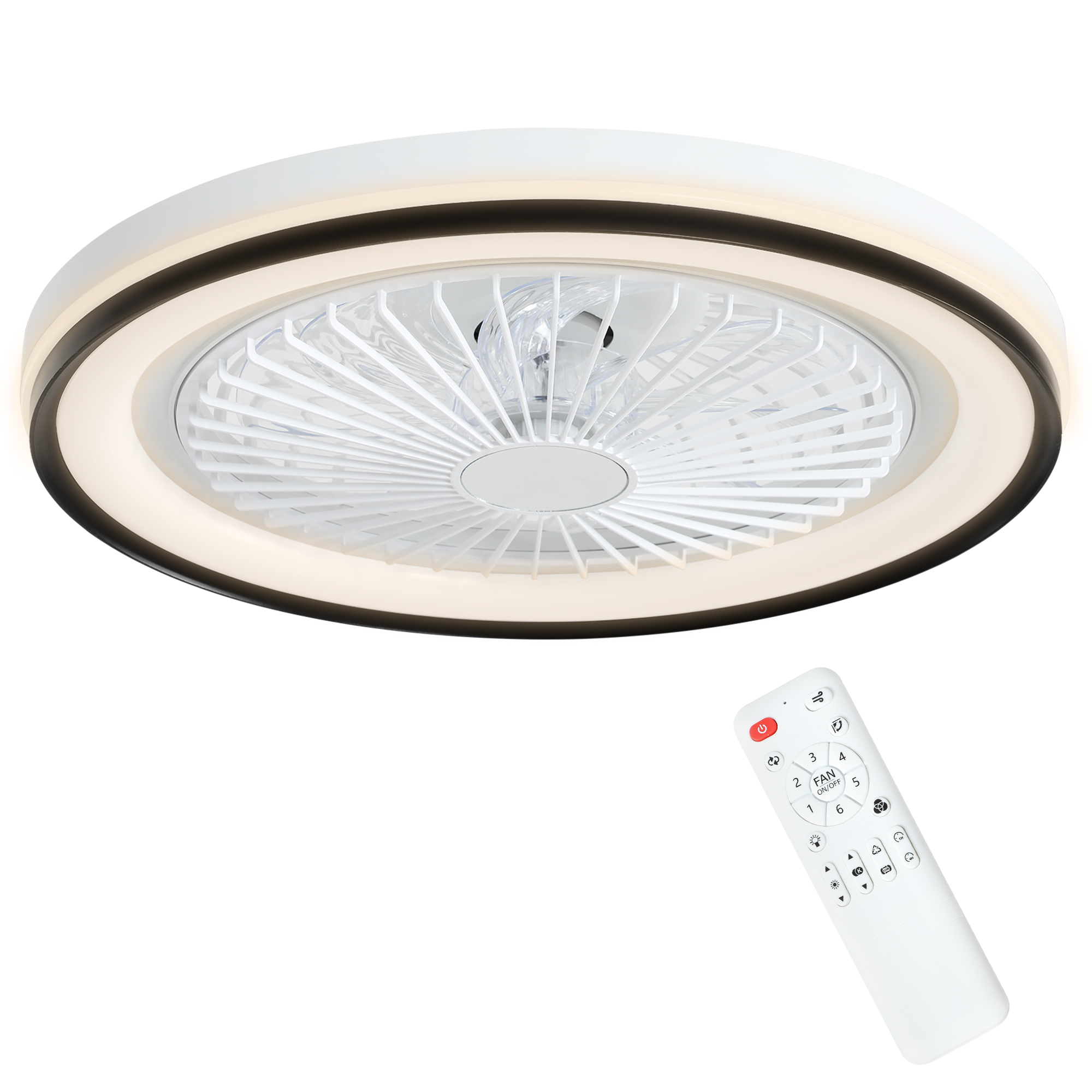 HOMCOM Ventilator de Tavan cu Iluminare RGB 6 Viteze Motor Reversibil și Telecomandă Putere 48,5W Ø48x13 cm Alb | Aosom Romania