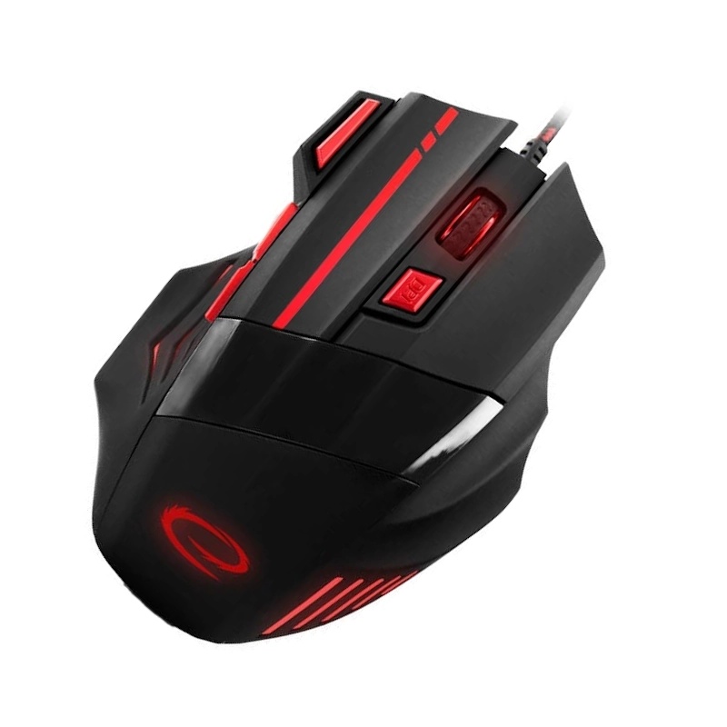 Mouse Gaming cu fir, 8 butoane, DPI reglabil 800 - 2400, conexiune USB, negru-rosu