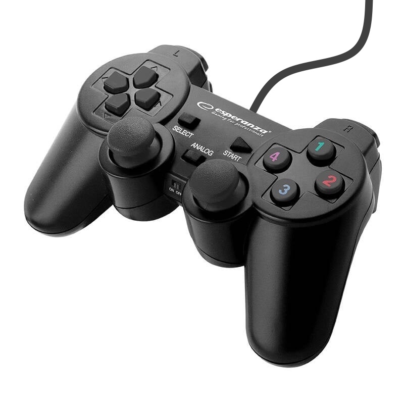 Gamepad PC cu fir, USB, 12 butoane, Negru