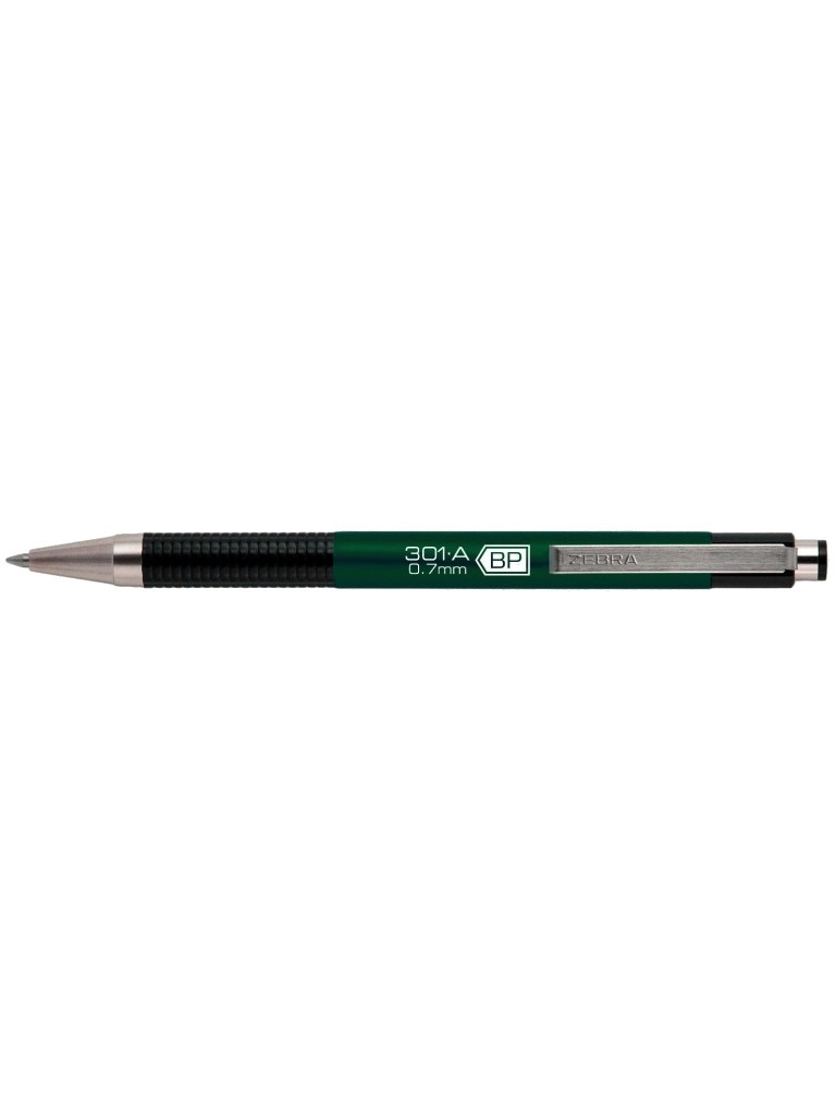 Pix retractabil, albastru, corp verde, varf 0,7mm, F-301A Zebra