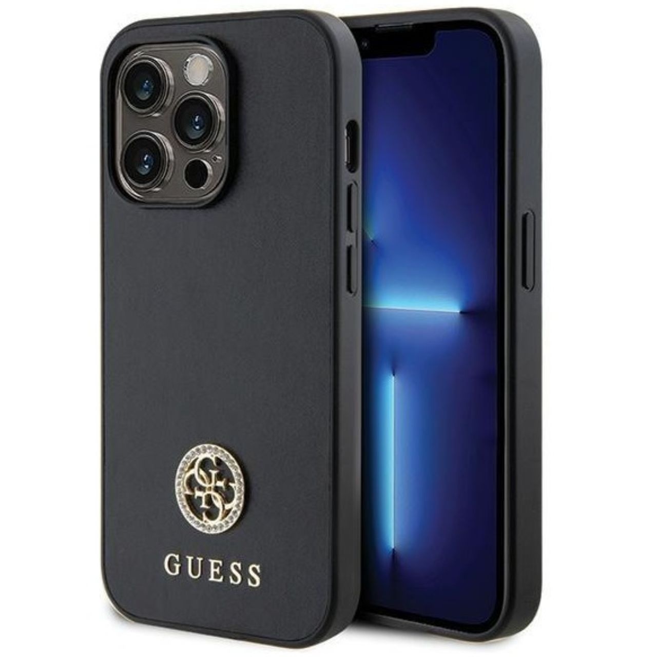 Husa de protectie pentru iPhone 15 Pro Max, PU 4G Strass Triangle Metal Logo, Guess
