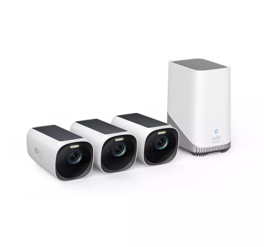 Kit supraveghere video eufyCam 3 S330 wireless cu 3 camere video, Ultra HD 4k, incarcare solara, Anker Eufy