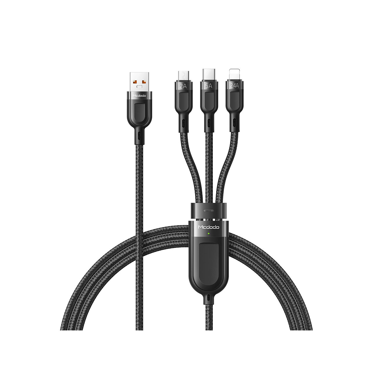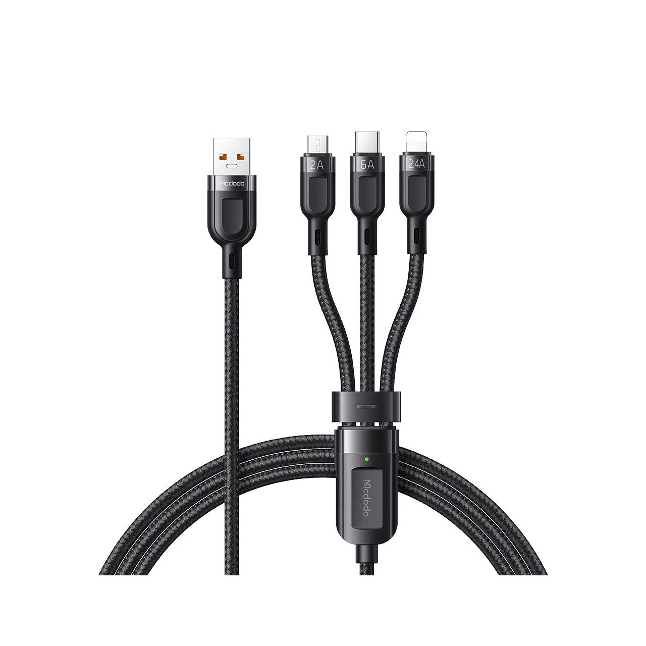 Cablu de date Lightning, MicroUSB si Type-C, 1,2m, 66W, negru, Grenade Series 3 in 1, Mcdodo