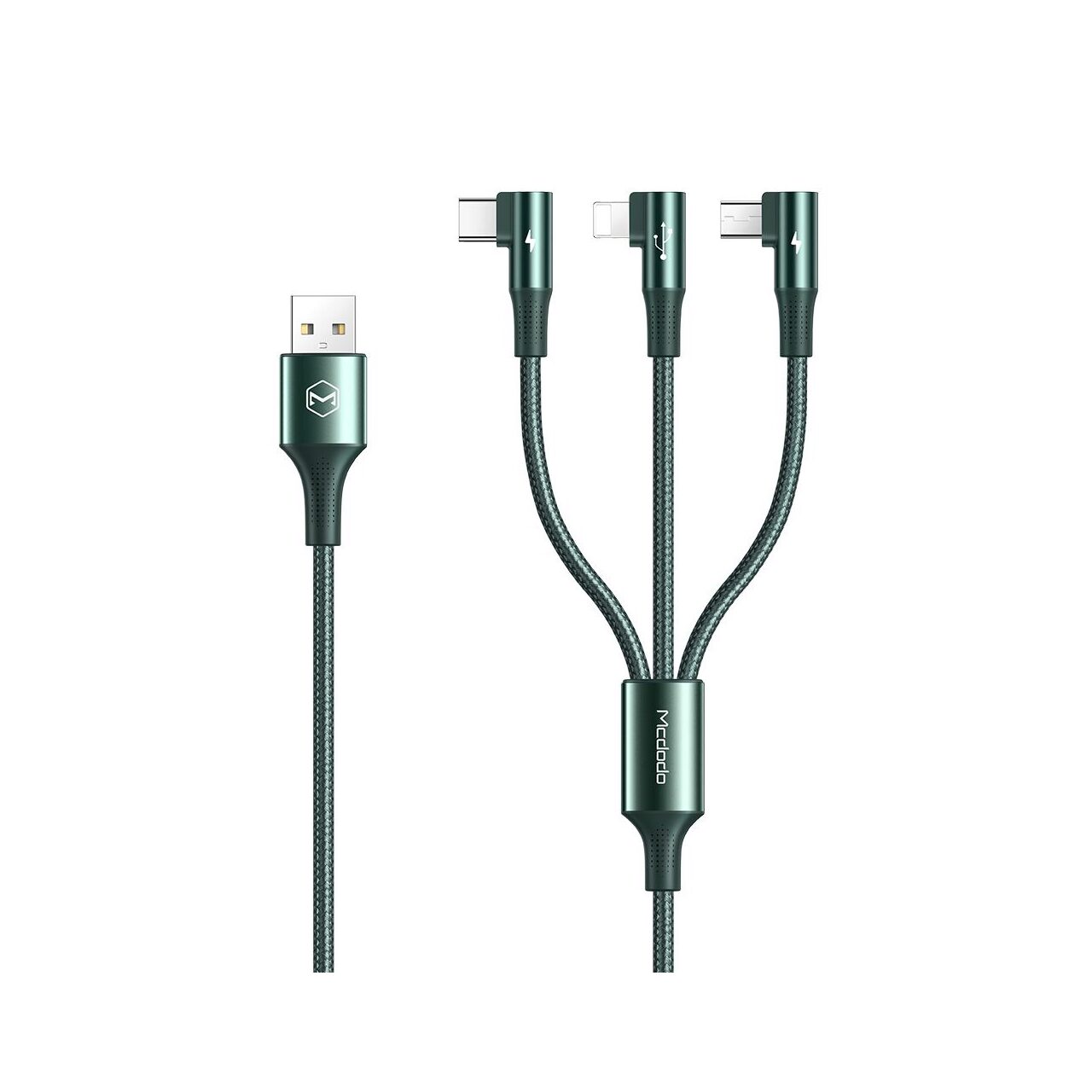 Cablu de date Lightning, MicroUSB si Type-C, 1,2m, verde, 3 in 1 90 Degree, Mcdodo