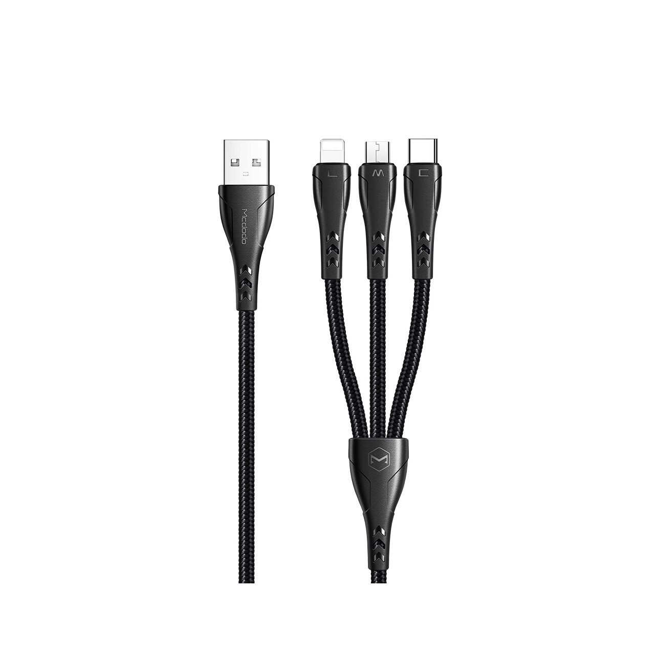 Cablu de date Lightning, MicroUSB si Type-C, 1,2m, negru, 3 in 1, Mamba Series, Mcdodo CA-6960