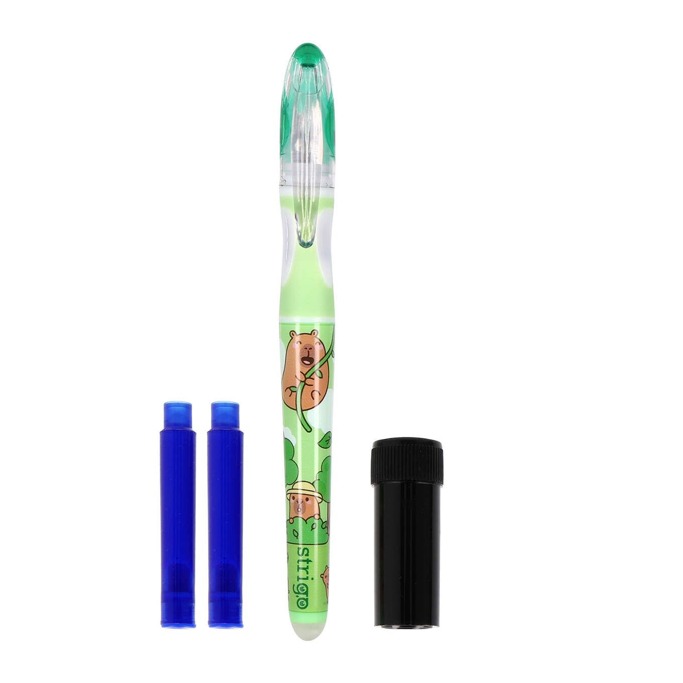 Stilou plastic cu cerneala termosensibila(se sterge) + dispozitiv curatare, verde, Seria Capybara, Strigo SSC509