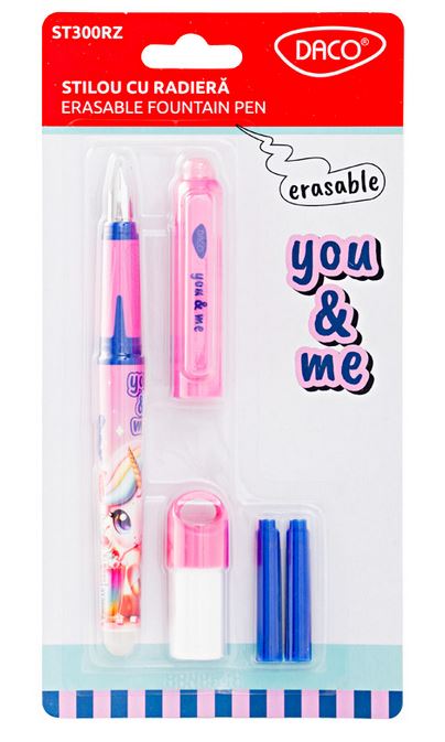 Stilou plastic cu cerneala termosensibila(se sterge), albastru, You and Me, ST300A Daco