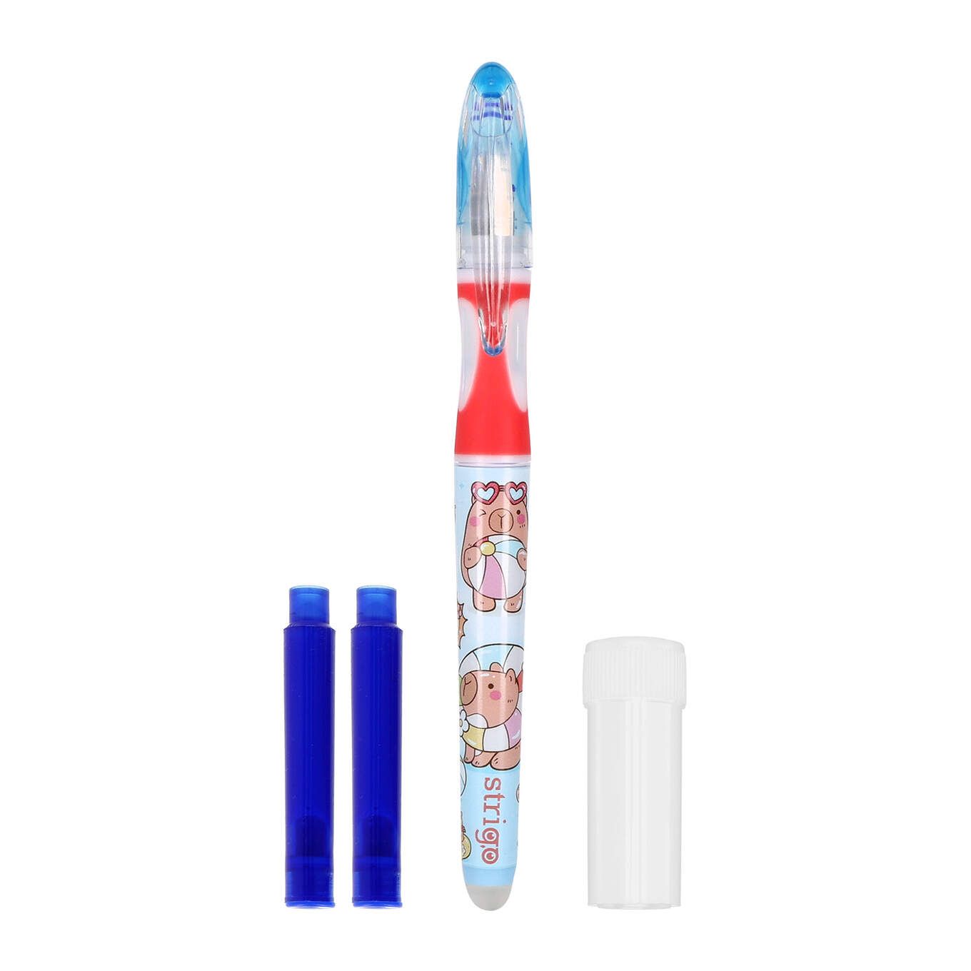 Stilou plastic cu cerneala termosensibila(se sterge) + dispozitiv curatare, roz, Seria Capybara, Strigo
