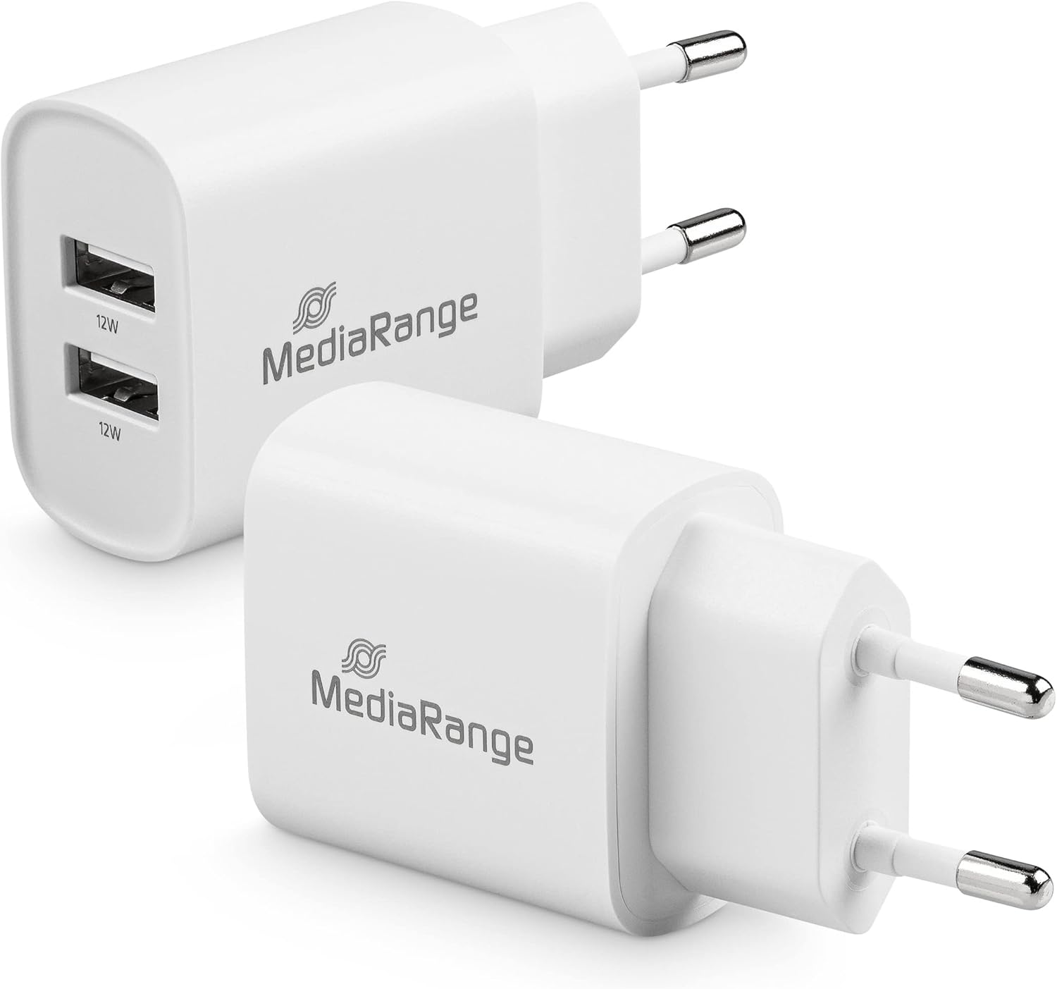 Incarcator retea, 2xUSB, 12W, alb, MediaRange