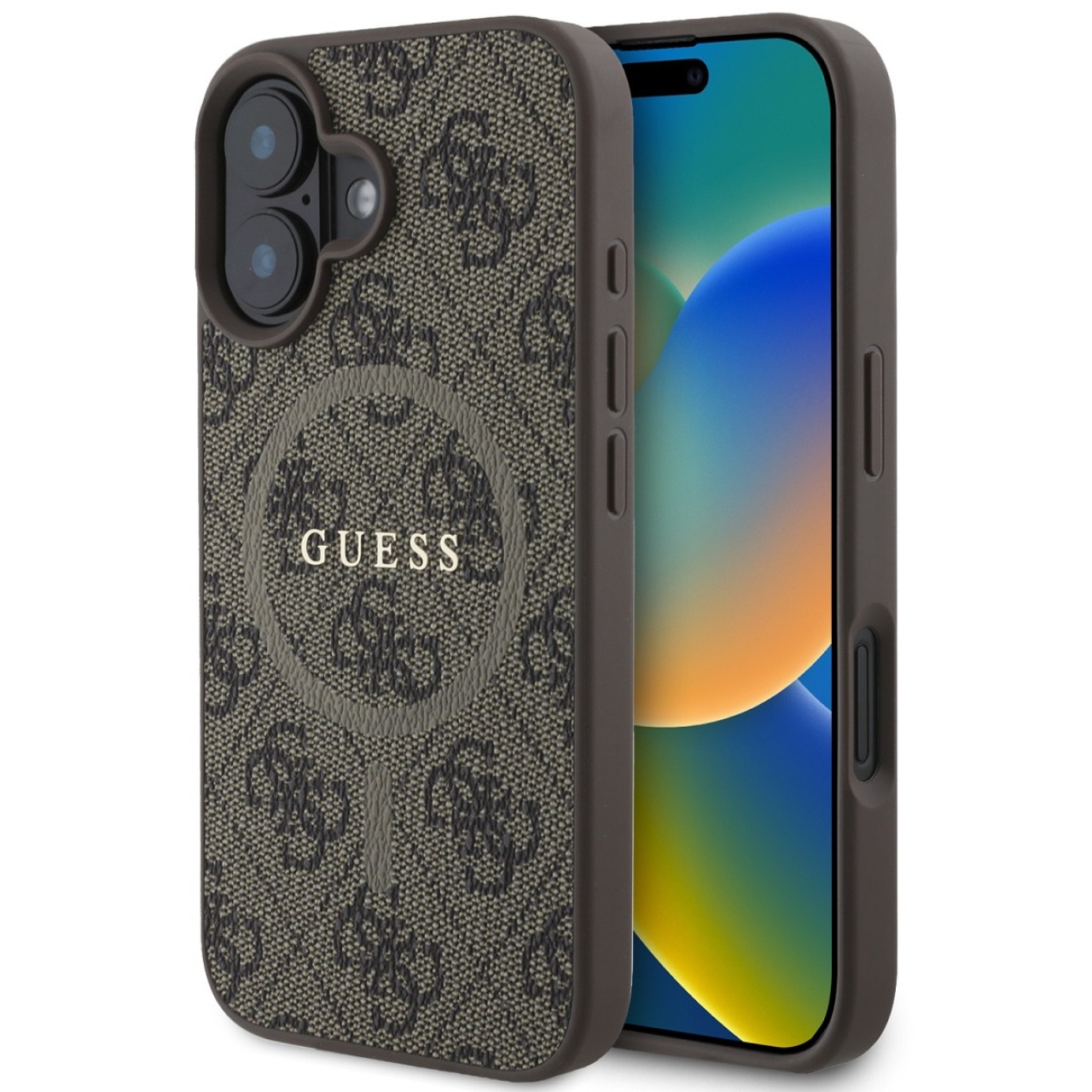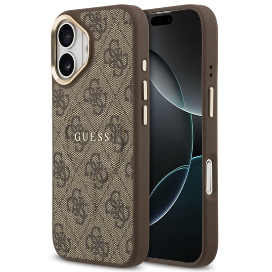 Husa de protectie pentru iPhone 16, maro, PU Leather 4G Colored Ring MagSafe, Guess