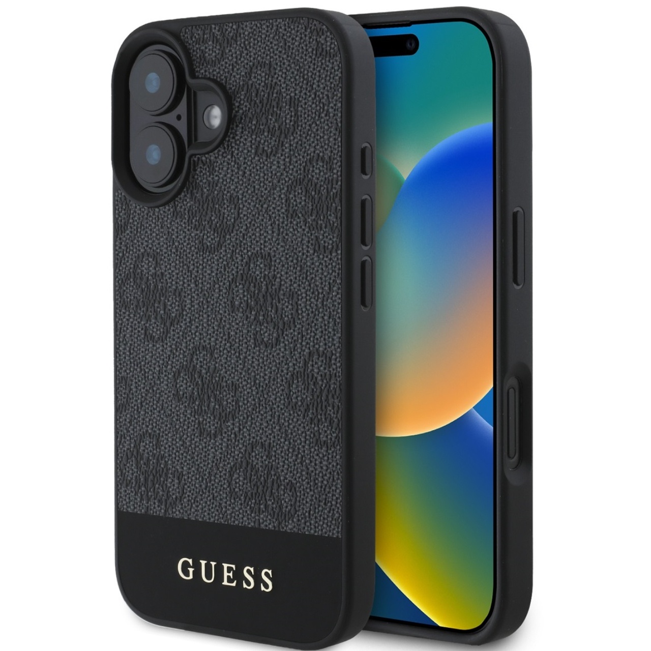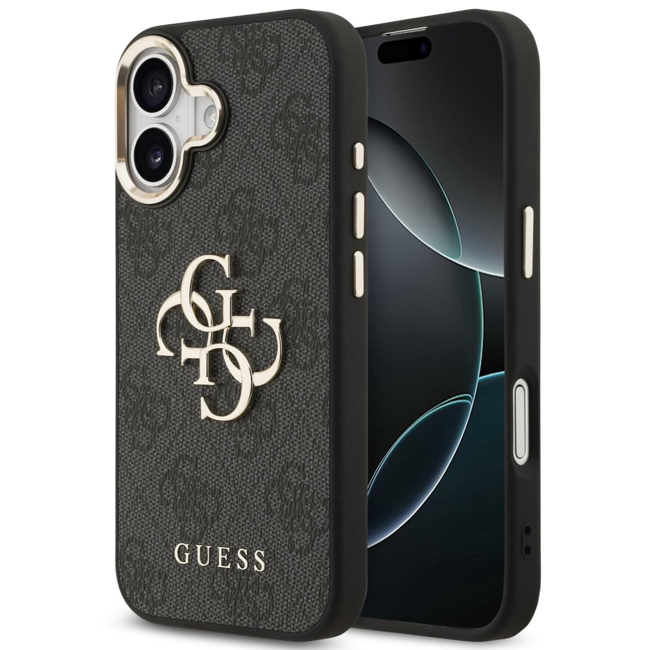 Husa de protectie pentru iPhone 16, gri, 4G Stripe Logo, Guess