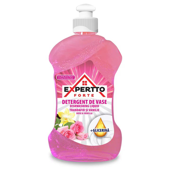 Detergent vase, parfum de trandafir si vanilie, 500ml, Expertto Forte