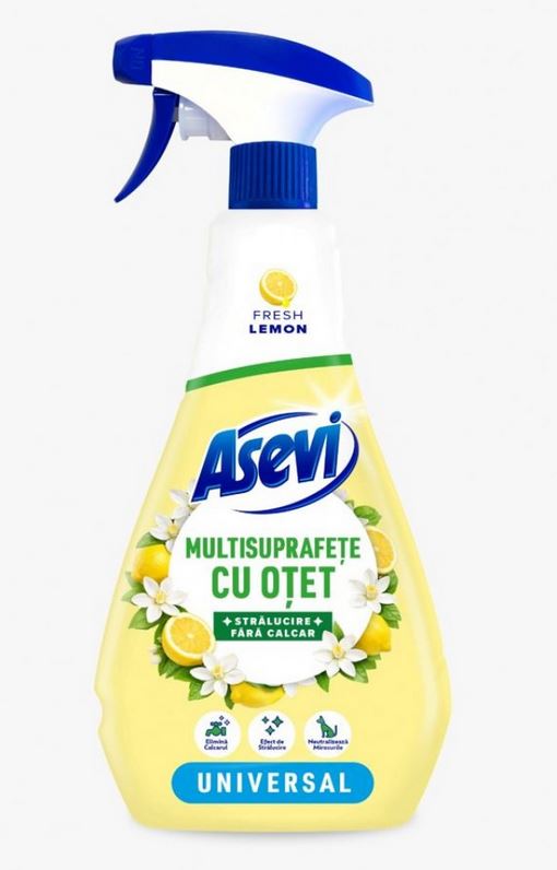 Detergent cu pulverizator anticalcar multisuprafete cu otet, 750ml, Asevi