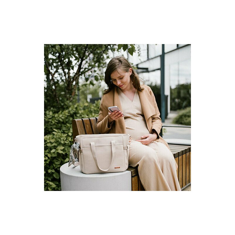 Geanta mamici, FreeON, Mommy things, Spatioasa si practica, Cu multiple buzunare, Include si 2 genti mai mici, Beige