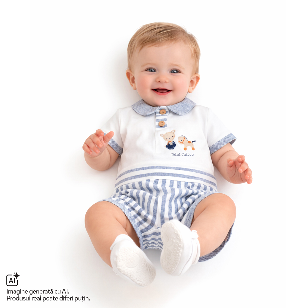 Tricou copii si pantaloni scurti Chicco, Alb cu albastru, 02032-70MFCI