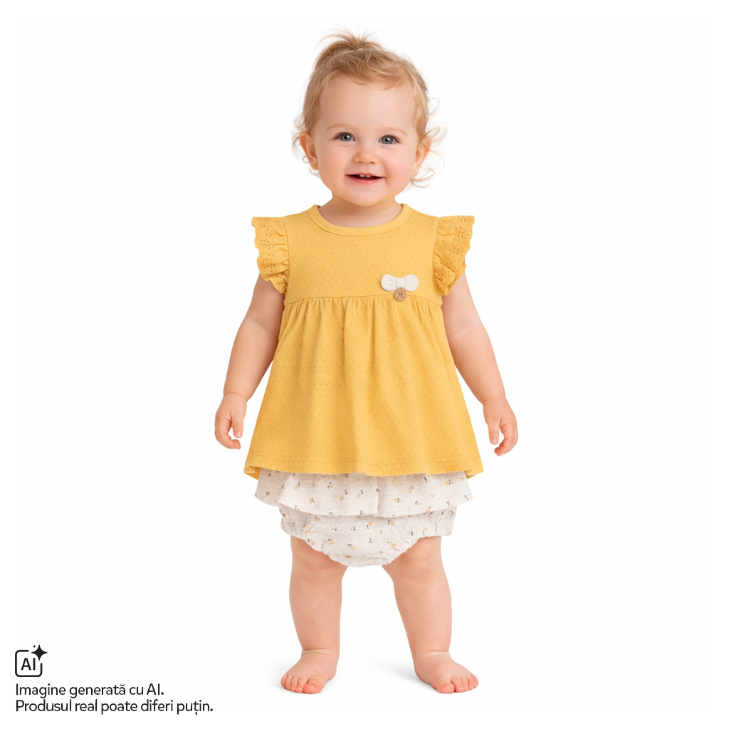 Tricou copii si pantaloni scurti Chicco, Galben cu model, 01540-70MFCI