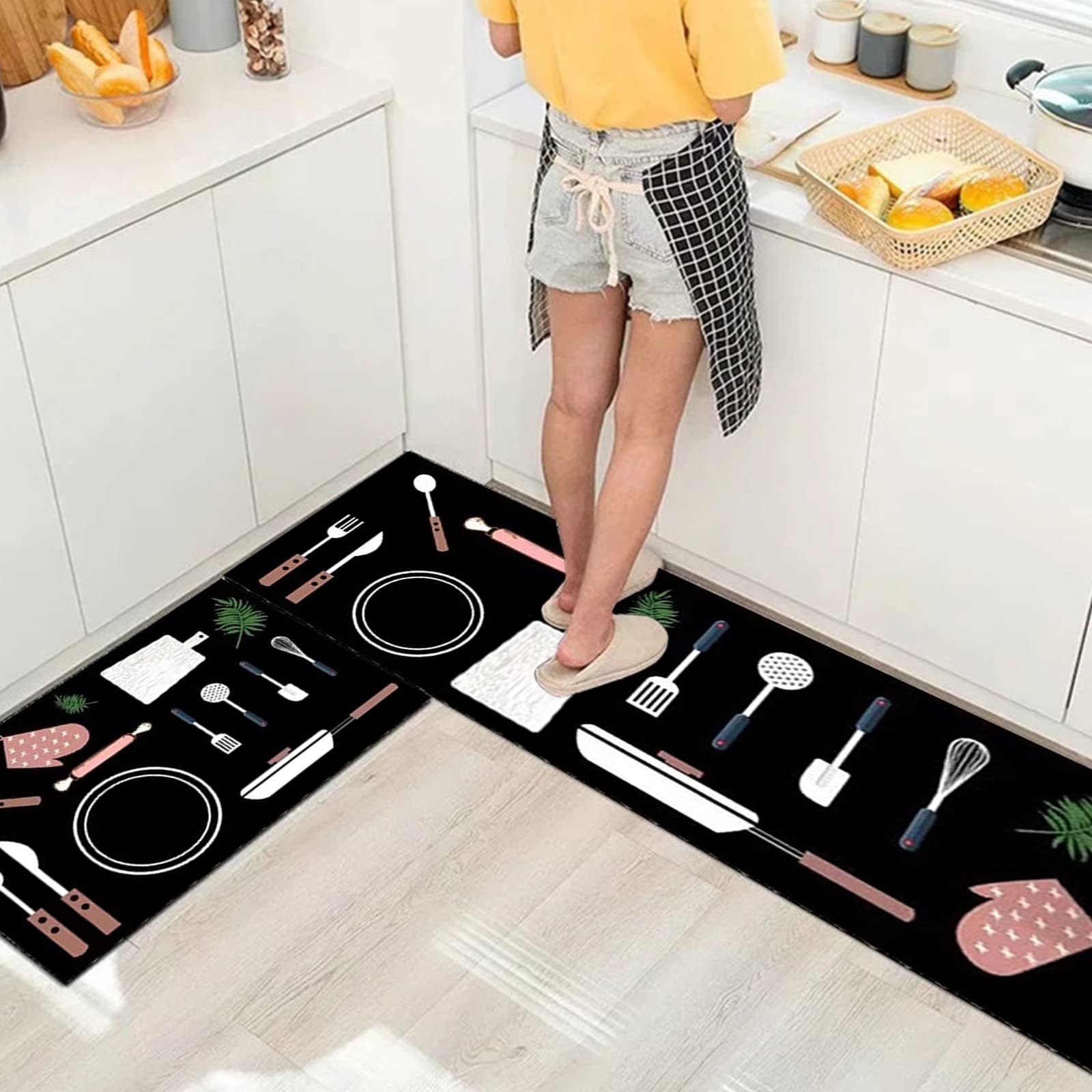 Set 2 covorase pentru bucatarie 1 x covor 50 x 70 cm 1 x covor 50 x 120 cm Set de covoare compus din 2 piese, ideale pentru orice tip de pardoseala. Confectionate din poliester, cu o suprafata antiderapanta si cu print digital de inalta calitate, aceste covoare de bucatarie vor schimba radical designul spatiului in care gatiti sau serviti masa. Protejeaza pardoseala, ofera un plus de caldura in timpul iernii si sunt foarte usor de intretinut, acestea putandu-se curata la masina de spalat. MOD DE INTRETINERE: Material: 100% polyester Fata antiderapanta - cauciucata Instructiuni de intretinere: spalare manuala Temperatura spalare: 30 de grade Celsius Nu se folosesc inalbitori chimici