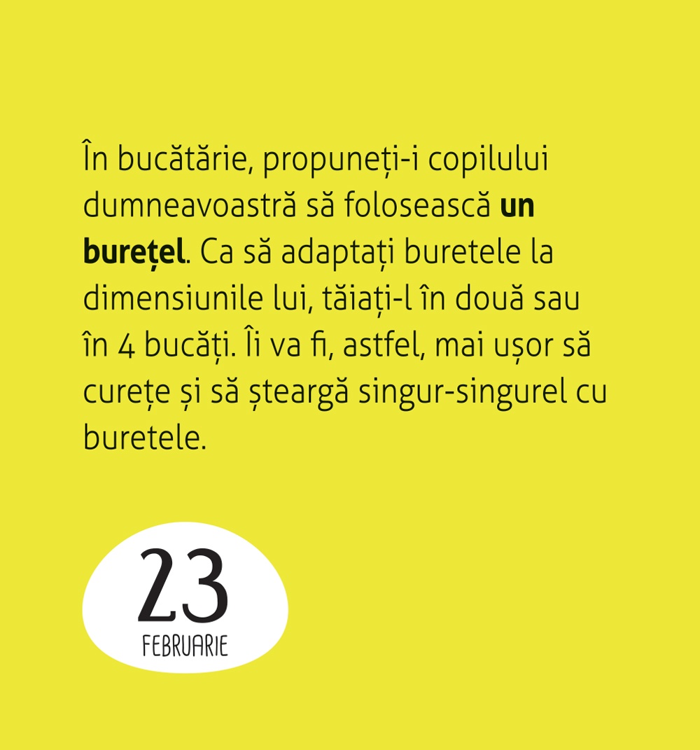 365 de zile pentru a descoperi pedagogia Montessori și a o pune în practică în familia dumneavoastră grație unor sfaturi, activități și citate ale celebrei Maria Montessori. Despre autor: Autoarea Vanessa Toinet este directoarea școlii Morvan Montessori din Franța. Caracteristici: Pagini: 376 Mărimi: 7,5 x 8,1 Autor: Vanessa Toinet Copertă: Cartonată (CUB)