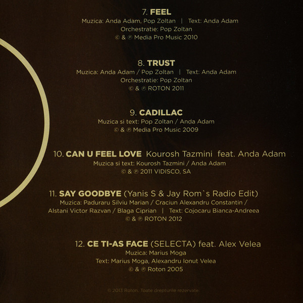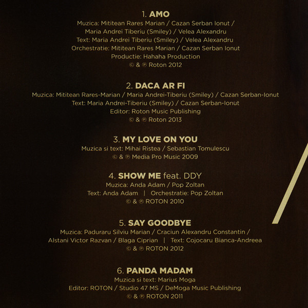 Amo - 3:28Daca Ar Fi - 3:17My Love On You - 3:22Show Me - 3:50Say Goodbye - 3:25Panda Madam - 3:30Feel - 3:45Trust - 3:47Cadillac - 3:36Can U Feel Love - 3:24Say Goodbye (Yanis S & Jay Roms Radio Edit) - 2:58Ce Ti-as Face (Selecta) - 3:25