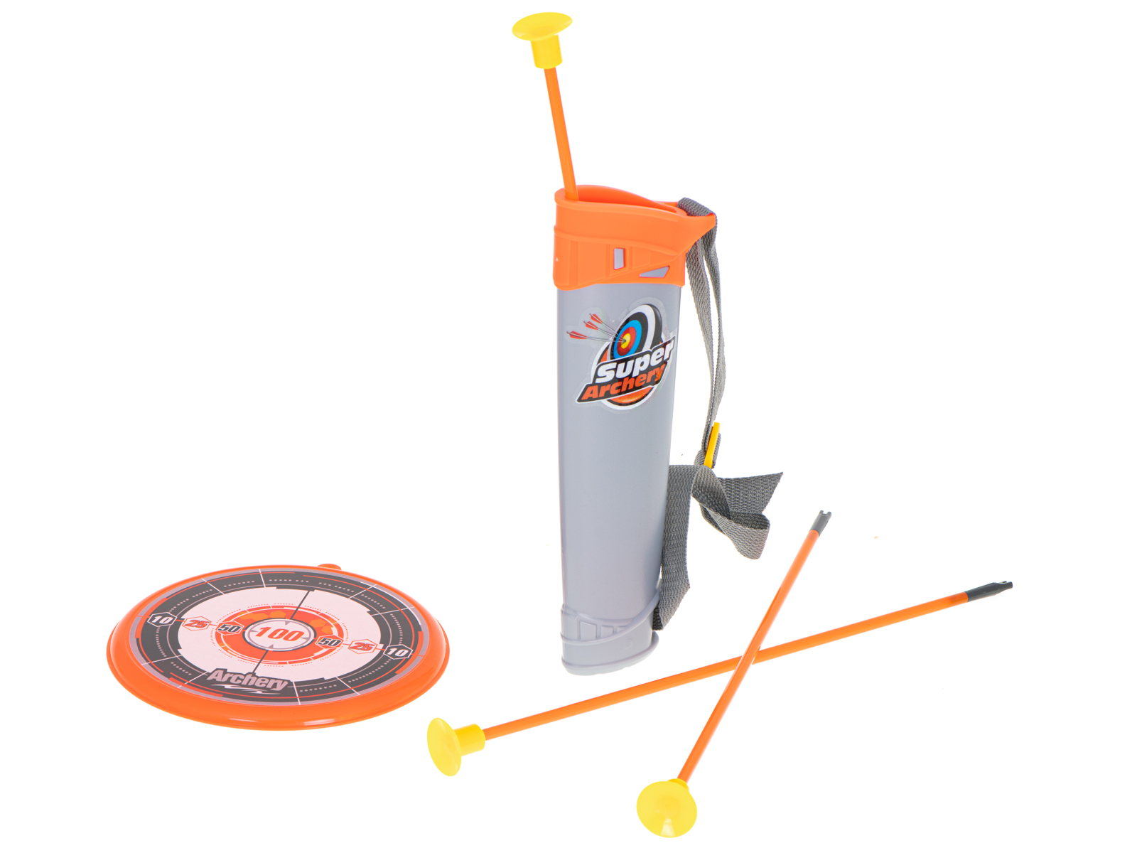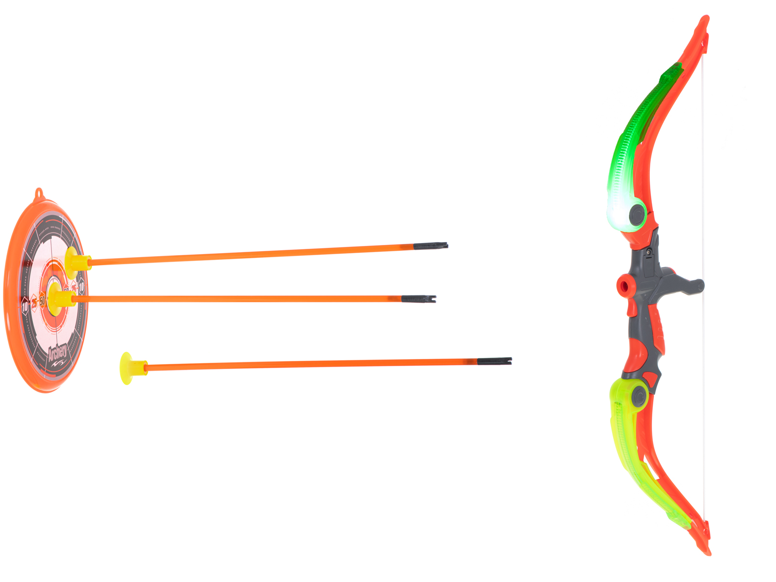 SET DE TRAGERE - ARC CU SAGETI SI PLACA TINTA O jucarie colorata si fascinanta pentru fiecare copil. Setul perfect pentru micii razboinici si pentru fanii indieni. Arcul de jucarie este ideal divertisment pentru copiii care viseaza sa devina arcasi. Arcul este incordat cu cauciuc, iar fiecare sageata este finisata cu un varf de cauciuc. Designul si culorile interesante fac ca fiecare copil sa se distreze pe cinste cu el. Un joc de dexteritate excelent pentru exersarea reflexelor si a p