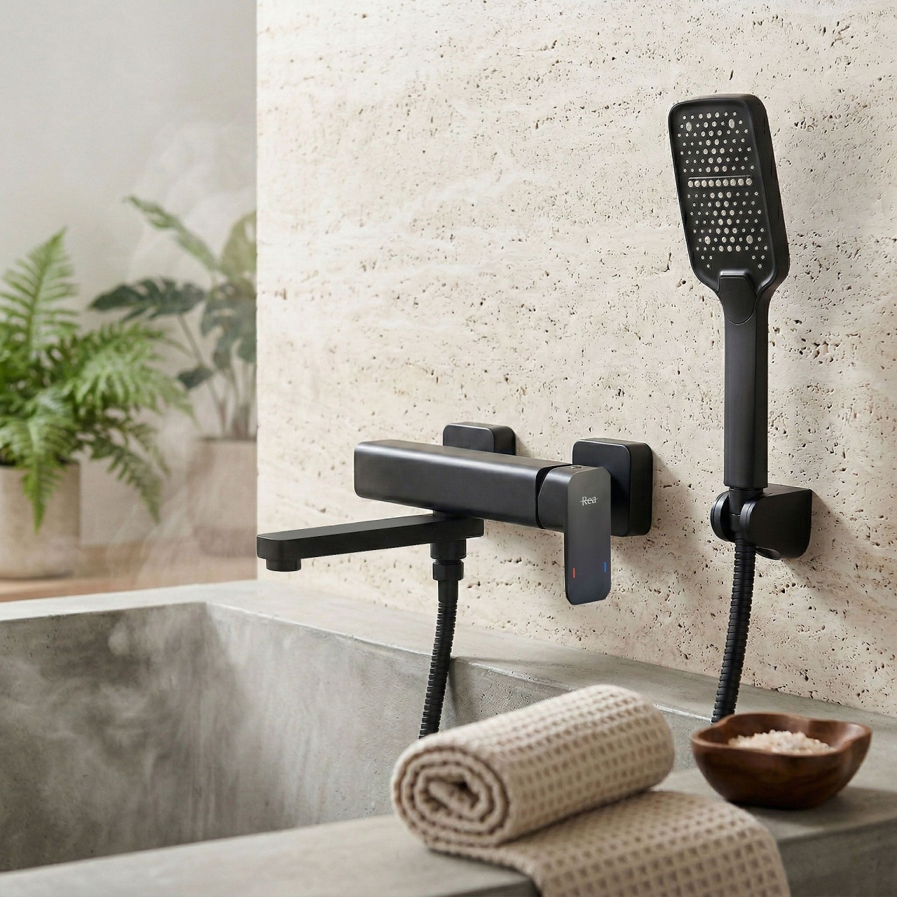 Evidențiază caracterul modern al băii tale alegând bateria de cadă Rea Arlo în finisaj negru mat. Forma sa minimalistă, geometrică se potrivește perfect cu cele mai noi tendințe de amenajare, devenind un accent decorativ expresiv. Datorită stratului Electroplating, suprafața neagră își păstrează profunzimea și finețea catifelată, atrăgând privirile oricărui pasionat de design.Nuanța negru mat oferă interiorului un caracter luxos, industrial și contrastează perfect cu ceramica albăPipă mobilă oferă mai multă libertate în timpul băii și ușurează curățarea zilnică a zonei căziiStrat Electroplating – finisaj negru mat aplicat prin galvanizare (electroplating). Tehnologia asigură o suprafață perfect netedă și o rezistență excepțională la uzură și la deteriorări mecanice.Set complet cu pară de duș asigură coerență vizuală și funcționalitate completă a dușului într-un singur modelPosibilitatea de a completa seria permite crearea unei amenajări armonioase cu bateriile de lavoar Arlo negre disponibile în ofertă Bateria de cadă Rea Arlo este o alegere excelentă pentru băi în stil loft, modern sau scandinav, unde contează formele simple și detaliile puternice. Proiectul rafinat cu pipă mobilă îmbină estetica cu un confort maxim de utilizare, creând un spațiu propice relaxării. Alegând seria Rea Arlo, optezi pentru un design care va oferi băii tale un caracter unic și luxos pentru mulți ani. Tip baterie: de cada Metodă de montaj: Montată pe perete Culoare: Negru Tip de gura de scurgere: Mobilă Material: Alamă, ABS Lungimea gurii: 180 Inalime: 80 Tehnologia de acoperire: Electroplating Diametru pentru conectare: 1/2 țoli Distanța dintre racorduri: 150 Garantie: 5 ani