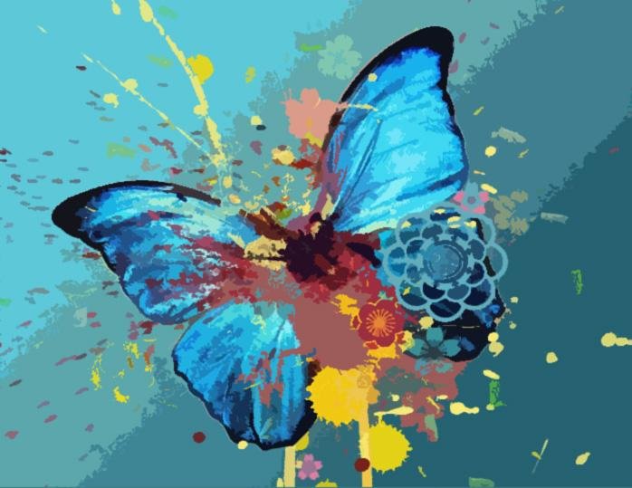 Blue Butterfly este una din picturile pe numere cu care să începeți această experiență. Culorile calde și fluturele măiestos devin un tablou atractiv.