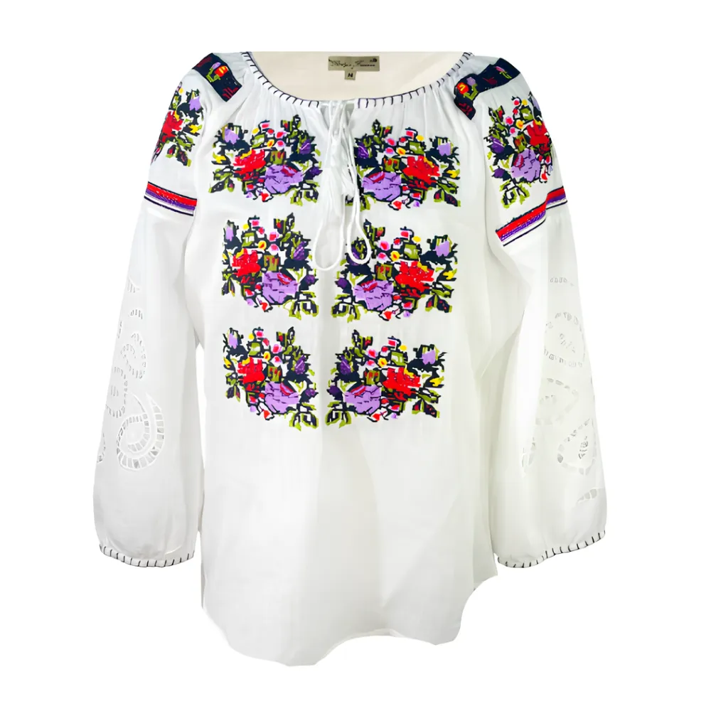 Bluza Alba cu Motiv Floral Multicolor - BMG178