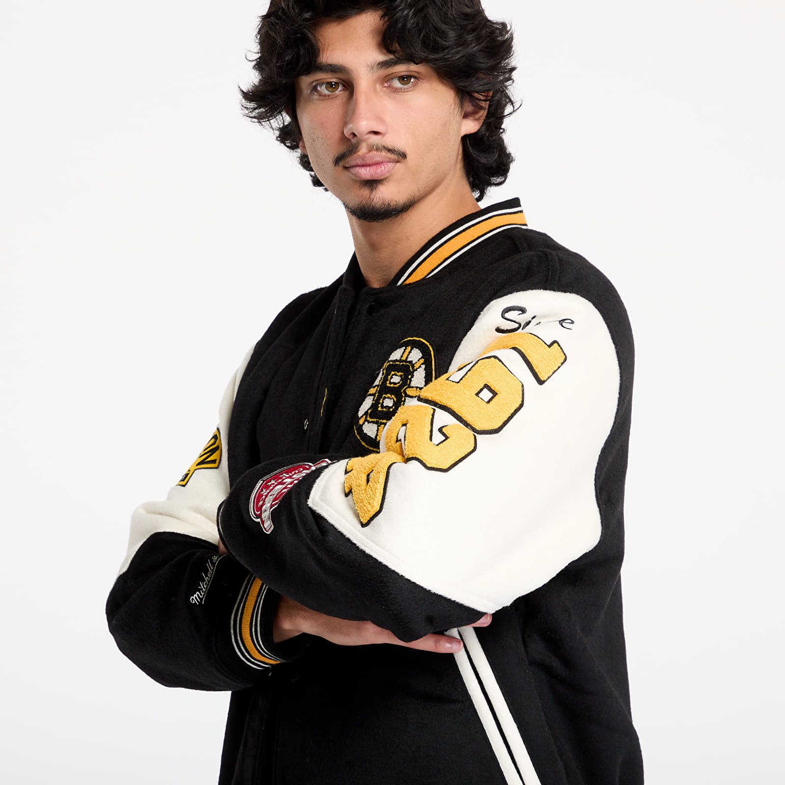 Bomber Mitchell & Ness NHL Team History Varsity Jacket Current Logo Bruins Black pentru 1360 lei. Cod produs: JK8080-BBNBLCK, material:
