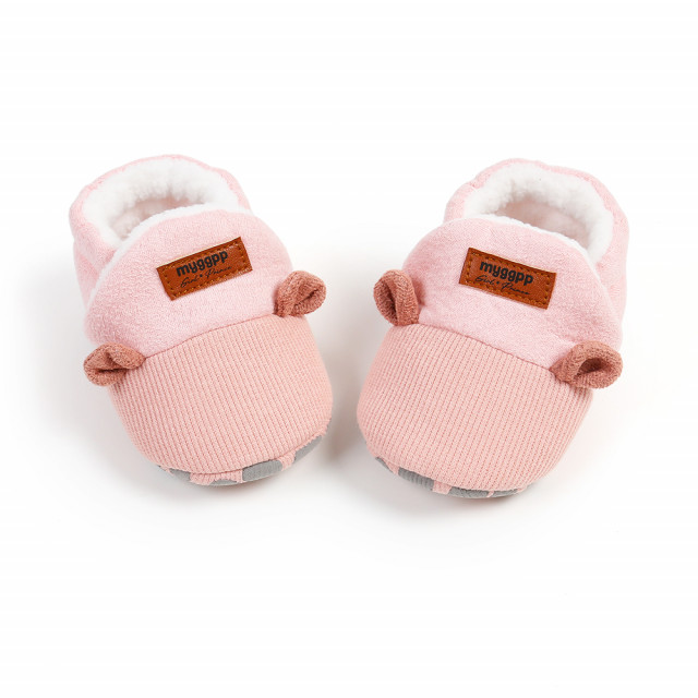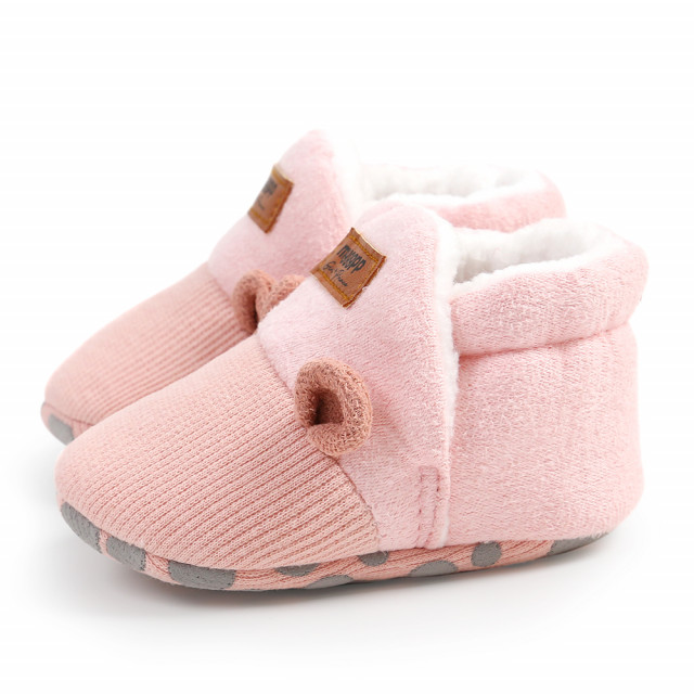 Marimi: 3-6 luni (lungime talpita la exterior 11 cm) 6-9 luni (lungime talpita la exterior 12 cm) 9-12 luni (lungime talpita la exterior 13 cm) Culoare: roz Model: botosei imblaniti pentru bebelusi din material textil plusat, sunt prevazuti cu elastic la spate Talpa: textil cu inscriptie antiderapanta