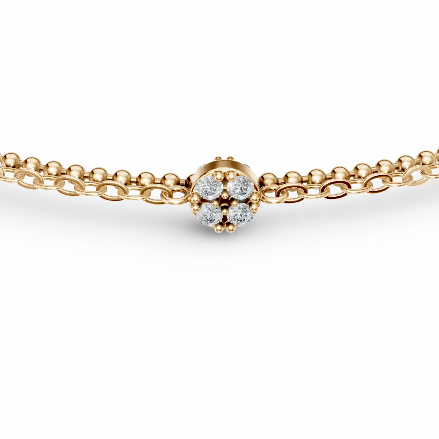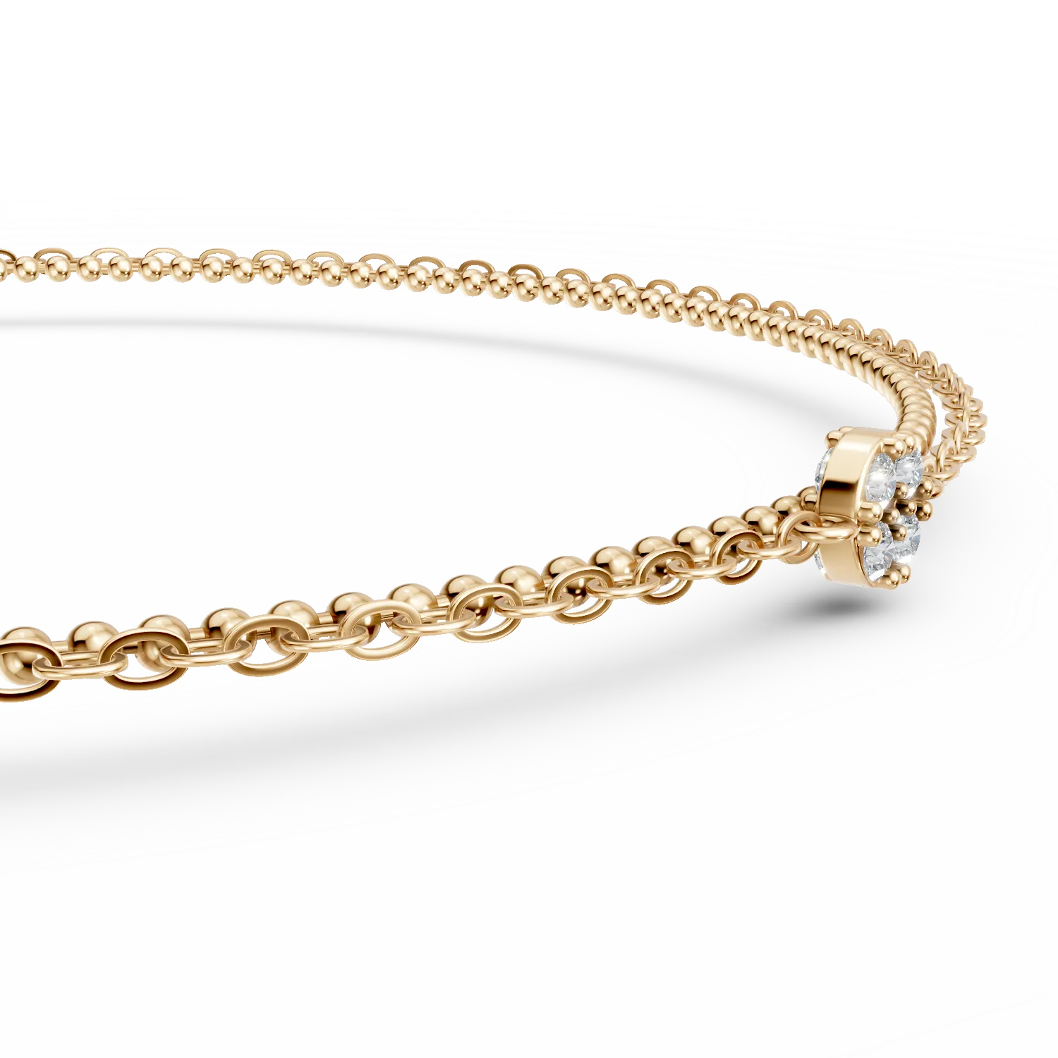 Un design echilibrat si actual defineste aceasta bratara dubla din aur galben, construita din doua lanturi fine care se aseaza lejer pe incheietura. Zirconiile adauga un accent luminos, discret, care completeaza armonios tonul cald al aurului. Este o piesa usor de purtat zilnic, potrivita pentru un stil relaxat, dar atent ales. Bratara aduce un plus de dinamica si se integreaza natural in combinatii simple sau mai elegante. Un detaliu feminin, modern si bine proportionat. Poarta stilul DAAR!