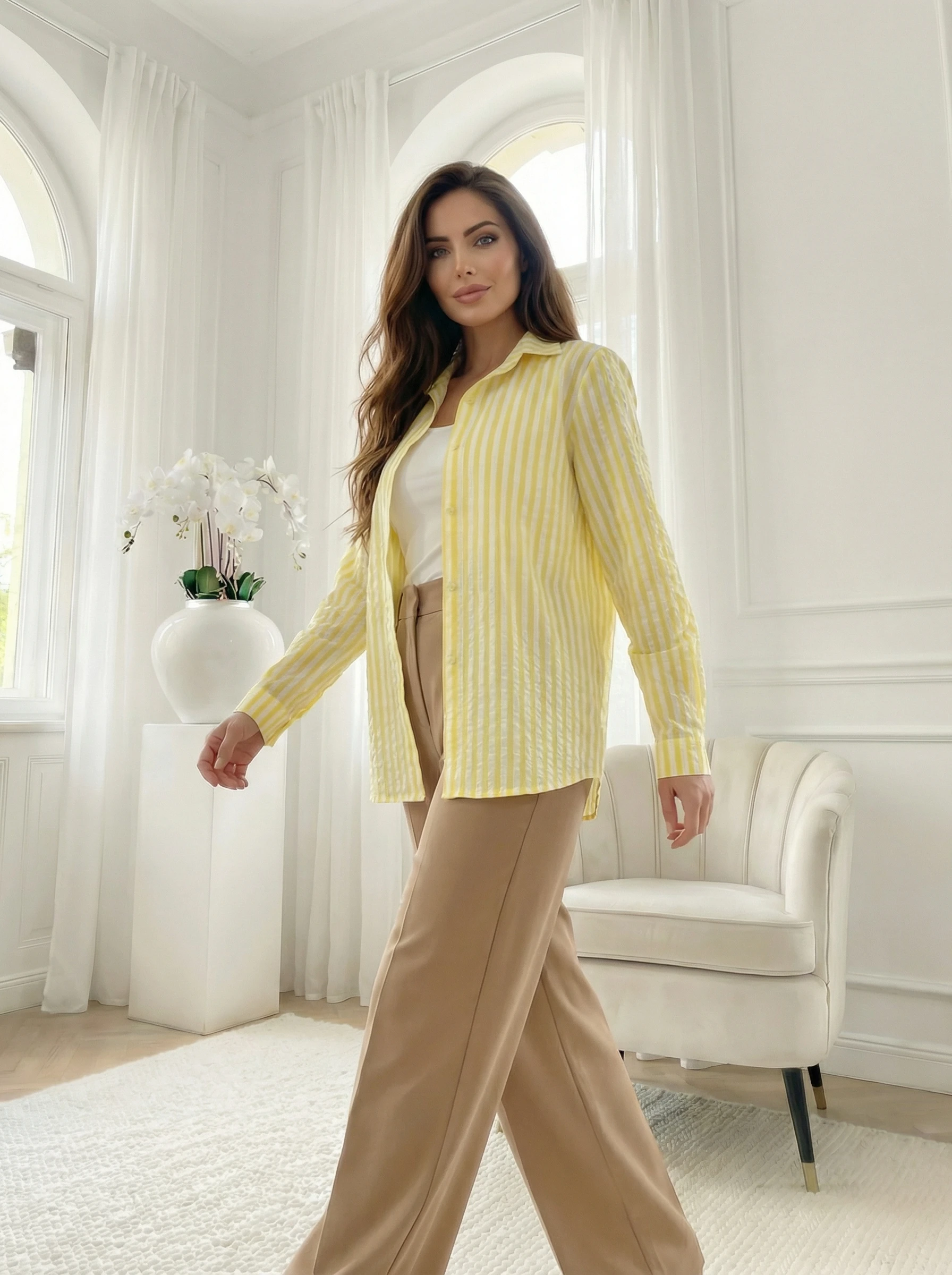 Camasa in carouri galben si alb, o piesa vestimentara esentiala pentru o garderoba moderna si relaxata, oferind un echilibru perfect intre stilul casual si cel office. Croiala lejera si materialul cu textura delicata asigura un confort sporit pe tot parcu