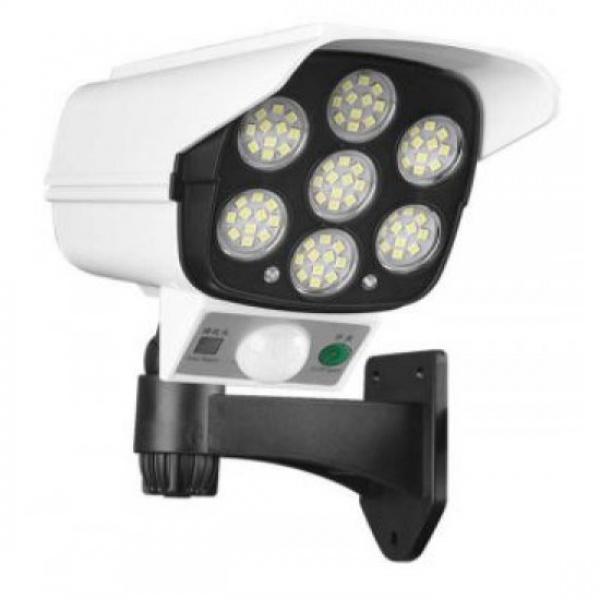Camera falsa cu panou solar, 77 LED, senzor de miscare Camera falsa solara 2 in 1 cu 77 de leduri Senzor de miscare si design realist Bateria integrata de 2600 mAh - pana la 40 de ore de luminare slaba Este rezistenta la apa, recomandata pentru folosire in exterior Are 3 moduri de iluminare: lumina slaba noaptea, dar puternica atunci cand detecteaza miscare lumina inchisa noaptea, doar ledul rosu clipoceste lumina continua