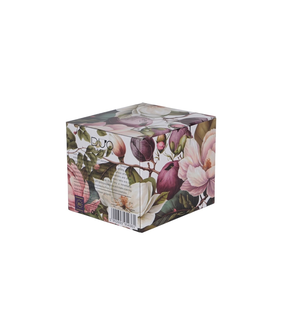 MAGNOLIAS este o cană din porțelan cu un print floral spectaculos, în nuanțe elegante de roz pudrat și lila, pe fundal alb. Designul are aer „boutique”, iar forma rotunjită o face foarte plăcută pentru pauza de ceai sau cafea. Beneficii• Capacitate generoasă (430 ml) – ideală pentru ceaiuri lungi, infuzii, latte sau cappuccino• Formă bombată tip „comfort mug”, stabilă și comodă în palmă• Decor floral mare + detaliu în interior (o surpriză plăcută când bei)• Cutie cadou inclusă – ușor de oferit, fără ambalaj suplimentar Cum o foloseștiPotrivită pentru ceai, cafea, cacao sau infuzii. Pentru o experiență mai bună, încălzește cana cu puțină apă caldă înainte de servire. ÎngrijireSpală cu burete moale și detergent delicat. Compatibilă cu mașină de spălat vase. Detaliu de stilPaleta roz-lila + verde închis dă un look sofisticat, potrivit atât pentru un colț de ceai „cozy”, cât și pentru birou.