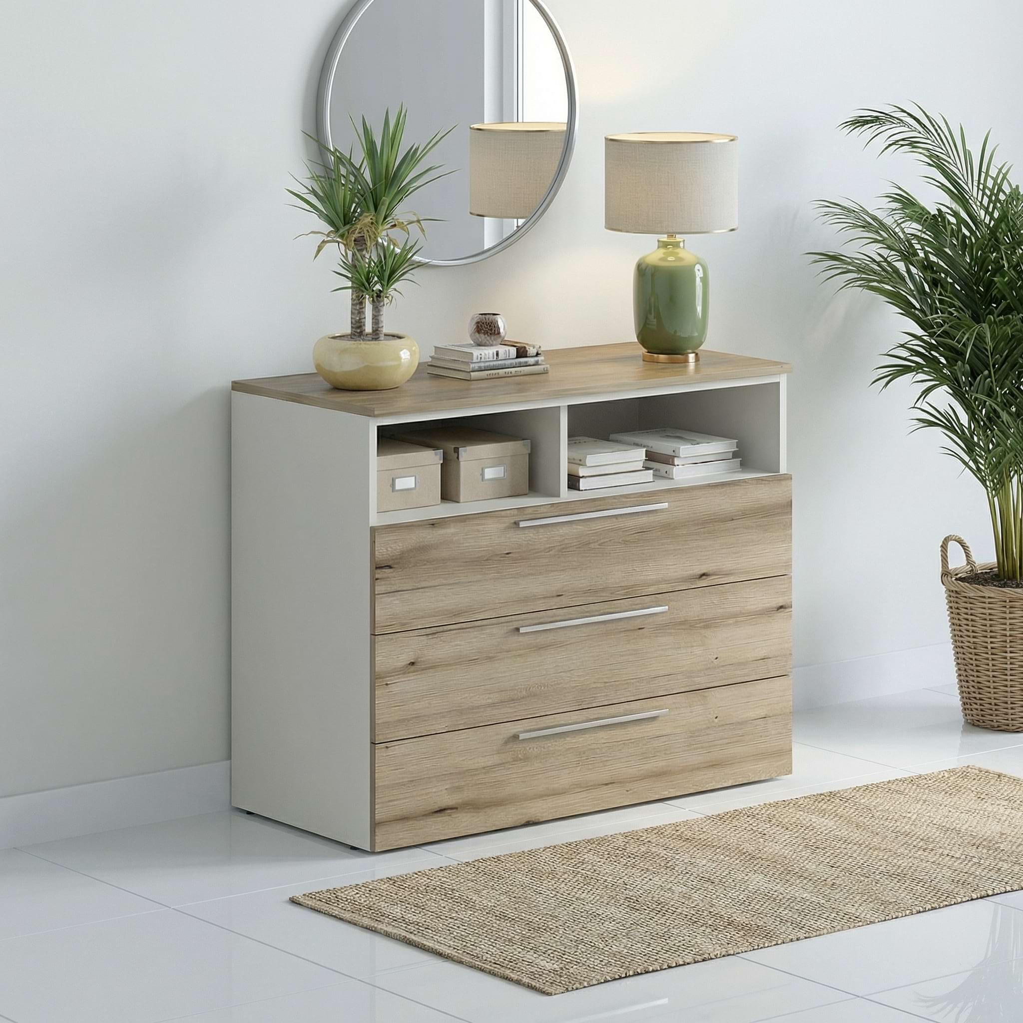 Comoda dormitor ARONA – funcționalitate, durabilitate si design atemporalCu peste 25 de ani de experiența in producția mobilierului de serie, TAMOS redefineste standardele pentru dulapurile modulare. Modelul ARONA exprima rafinamentul combinatiei dintre Alb Porțelan si Stejar, oferind un design versatil, potrivit oricarui dormitor modern.Construit din materiale de calitate superioara si echipat cu feronerie Hafele Germania, Comoda ARONA 120, A42, H74, 1U3S, Alb Portelan, Stejar asigura o utilizare sigura, silențioasa si durabila in timp. Comoda ARONA 120Lungime: 120 cmAdancime: 42 cmInalțime: 74 cm (72cm carcasa + 2cm picioarele reglabile)Construcție solida: Carcasa solida din PAL de 16 mm – Durabila si stabila, in nuanțe neutre usor de integrat.Asamblare un sistem rastex/cama si cepi de lemnPFL inserat in nut pentru un plus de rezistențaDesign simplu si modern: Finisaj Alb, potrivit pentru orice stil de dormitor.Sertare spatioase cu glisare soft-close – Inchidere silențioasa si confort zilnic.Glisiere cu bile Hafele Matrix BB S30 lungime 350 mm, 30 kg,H=45 mm, stop extragere totala (lungime 35cm)Picioruse metalice cu reglaj de inalțime (15-20mm) – Stabilitate pe orice suprafața, design elegant, culoare la alegere.Manere metalice argintii – Detaliu subtil, nu plastic! Mobilier kit - se livreaza demontat, ambalat in cutii de cartonKitul contine schita montaj, feronerie, certificat garantie si conformitate MaterialePAL dublu melaminat 16mm - Alb Portelan - carcasaPAL dublu melaminat 16mm - Alb Portelan, Stejar - fronturileCant ABS 1mmDecorul Alb Porțelan - W1200 de la Egger este un alb cald si neutru, usor mai moale decat un alb pur, ceea ce il face potrivit atat pentru spații moderne, cat si pentru interioare clasice. In funcție de lumina ambientala, poate parea mai deschis sau mai cald, dar este gandit sa ofere o senzație de echilibru si confort vizual.Decorul Stejar K365 de la Kronospan reda frumusețea naturii prin detalii autentice de crapaturi si noduri fine, combinate cu tonuri mai inchise ce ofera un contrast modern si elegant. Nuanțele calde si profunzimea culorii creeaza o atmosfera autentica, potrivita pentru blaturi de lucru, fronturi sau decoruri de perete. In combinație cu Alb Porțelan, acest decor ofera un contrast armonios: albul lumineaza spațiul, iar stejarul aduce caracter si personalitate, perfect pentru interioare contemporane cu accente naturale.*Mobilierul comercializat este de serie si configurabil, iar anumite colecții pot include zone de pre-gaurire prevazute inca din faza de proiectare. Aceste elemente sunt gandite astfel incat sa permita adaptarea polițelor interioare la diferite inalțimi si fac parte din soluția constructiva care asigura flexibilitatea si compatibilitatea componentelor. Aceste particularitați nu reprezinta defecte de fabricație. Garantie producator 24 luni Livrare Gratuita in toata tara*Manipularea produsului nu este inclusa. Acesta se preia de la masina.*Accesoriile din imagine nu sunt incluse in pret( Haine , perne , lampi , veioze...)...