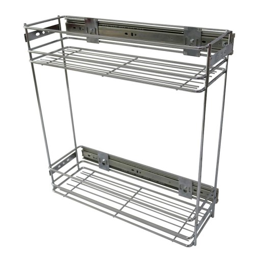 Cos Jolly pentru sticle pentru corp de mobila de 20 cm latime. Include glisiere cu amortizare la inchidere care se prind pe laterala corpului. Pretul este pentru 10 bucati. DIMENSIUNI Latime: 160 mm Adancime: 470 mm Inaltime: 485 mm CARACTERISTICI Material cromat Diametru sarma: 6.8 / 5.8 / 2.8 mm Inchidere cu amortizare