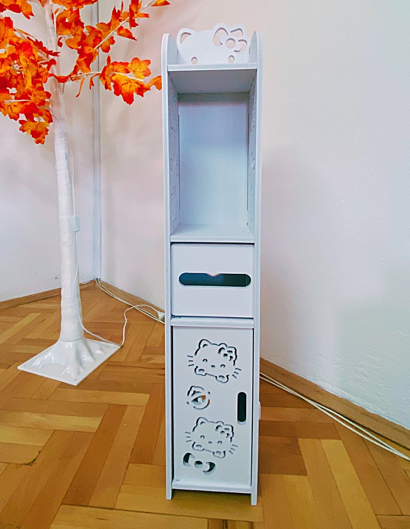 Dulap vertical vintage, Alb - Kitty Lungime x Latime x Inaltime: 80x15x15 cm Acest dulap de baie elegant, va deveni un punct de atractie in baia dumneavoastra. Dulapul independent de podea are un finisaj alb si va fi o solutie excelenta de depozitare pentru toate accesoriile dumneavoastra de baie, precum ghivece de flori si produse cosmetice. este usor de curatat si de intretinut este foarte usor de asamblat culoare disponibila: alb material compozit: lemn si plastic produs ecologic si inodor nu contine formaldehide culoare: alb greutate maxima suportata: 15 kg instalare usoara DIY (do it yourself) design simplu si modern realizat cu material ecologic placaj rezistent la apa si umezeala combinatie perfecta intre greutate si durabilitate nu necesita instrumente de asamblare