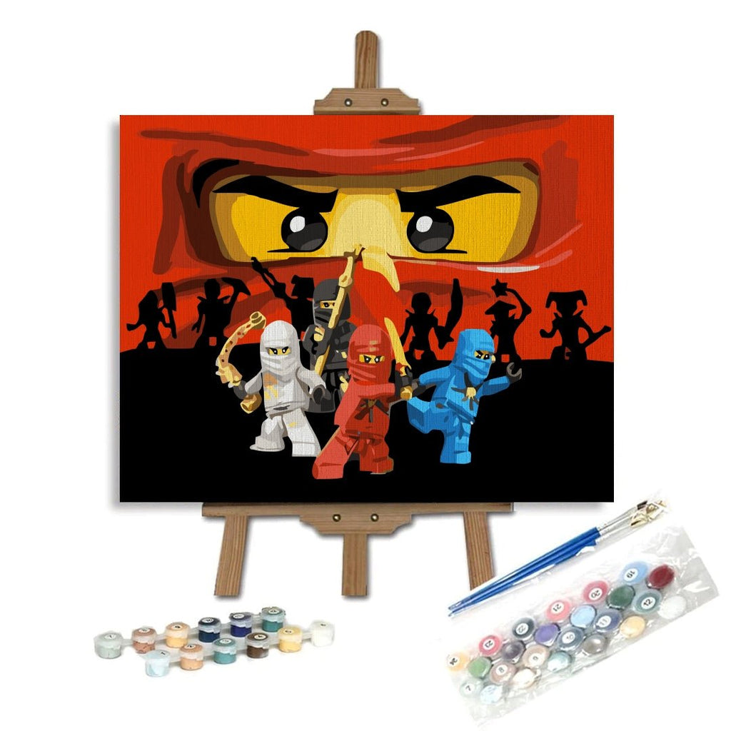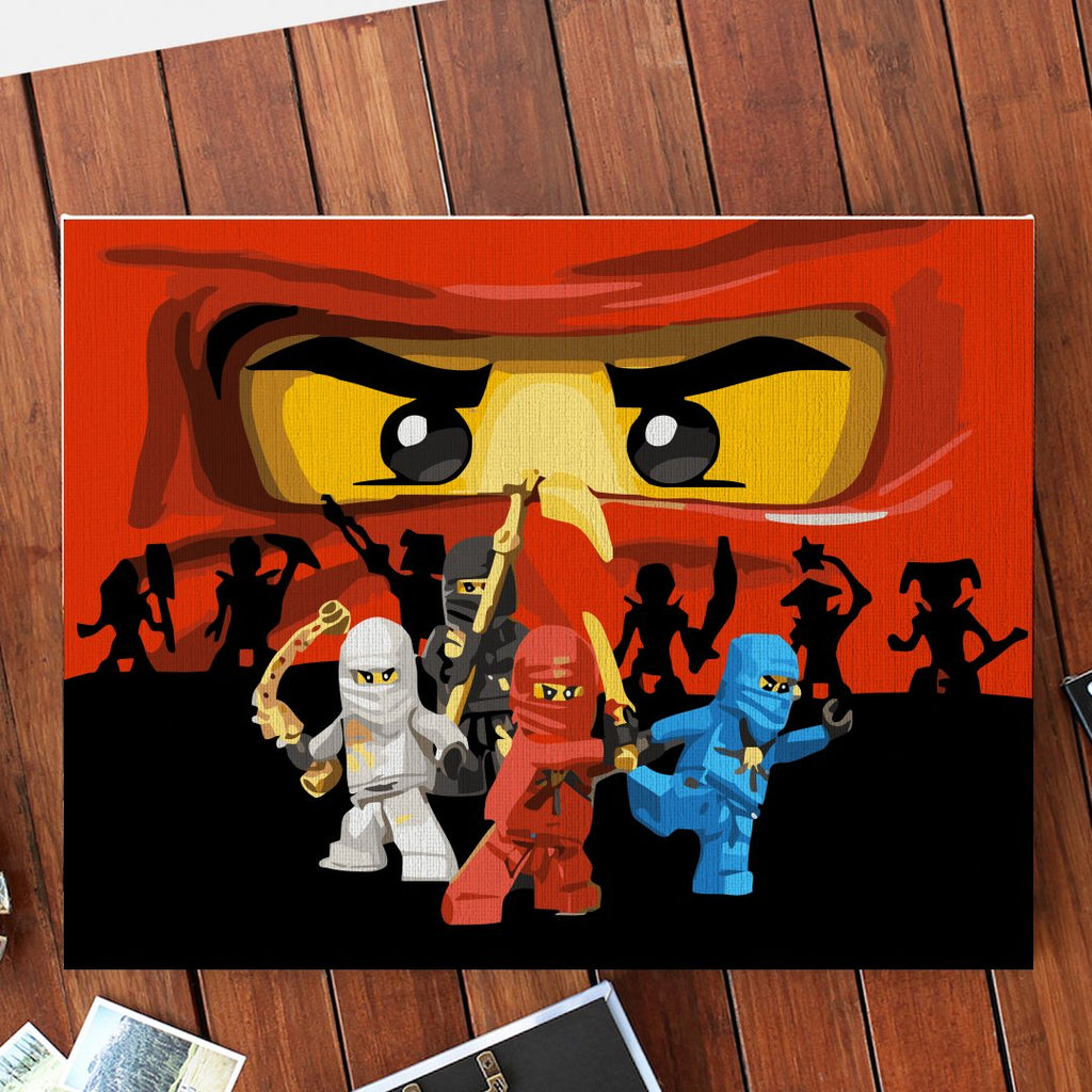 Pictura pe numere Echipa ninja (Ninja team) este o reproducere a câtorva personaje îndrăgite de copii din toată lumea, din serialul Ninjago. Este pictura perfectă pentru cei mici, care adoră această animație inspirată de jucăriile LEGO.