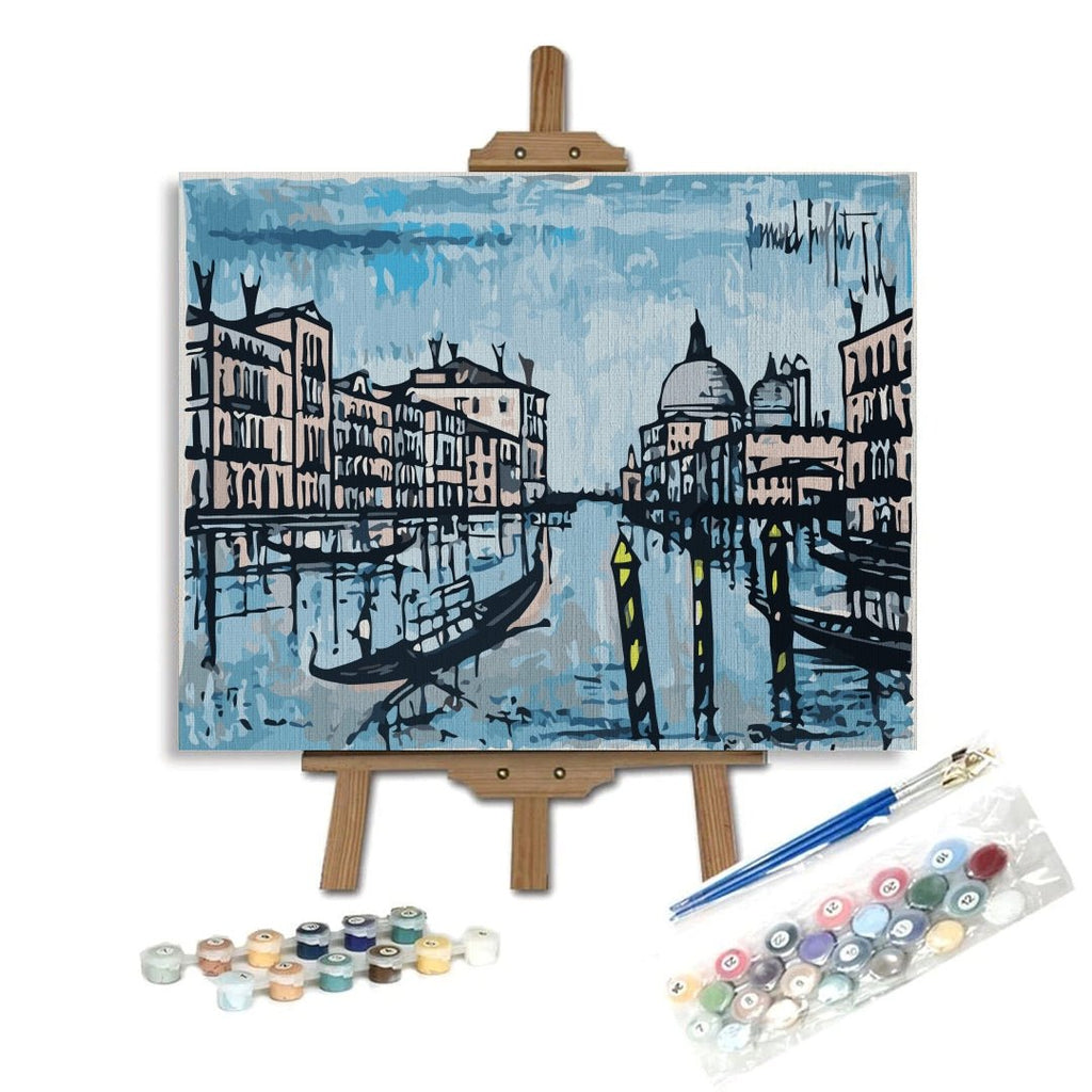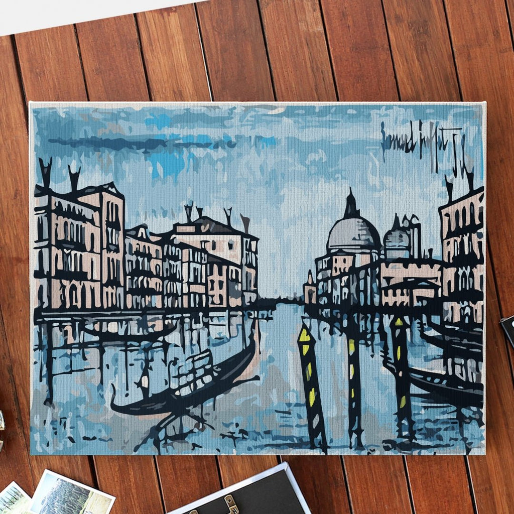 Veneția, frumusețe de tărâm italian, oricum ați picta-o este de o frumusețe rară. Lăsați-vă impresionați de locația aceasta și pictați pe numere un tablou reproducere după Le Grand Canal de Venice de Bernard Buffet, Exploring Venice.