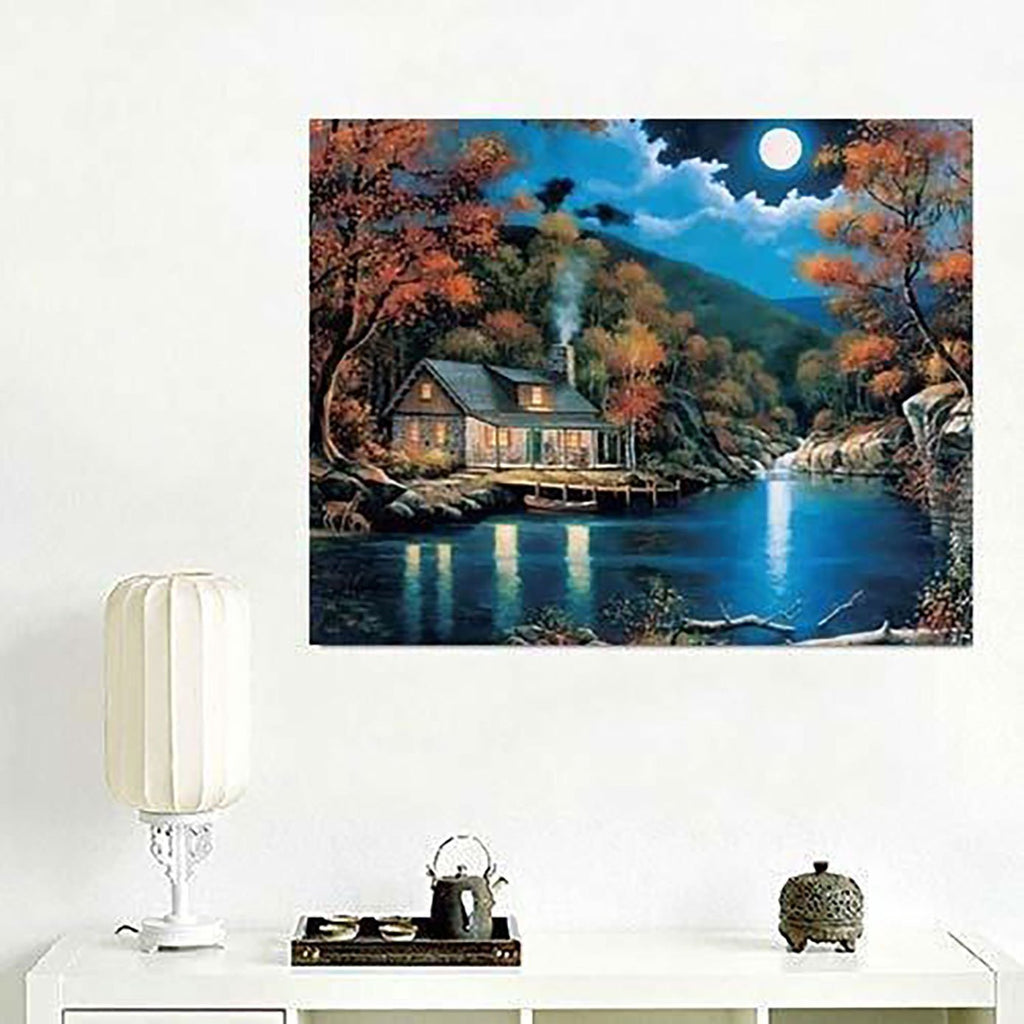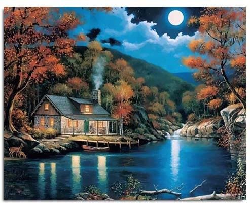 Pictura pe numere Fairytale House are menirea de a cufunda pe oricine într-o lume mirifică. Detaliile artistice desprinse parcă din poveștile preferate vă transformă orice living într-un tărâm fantastic.