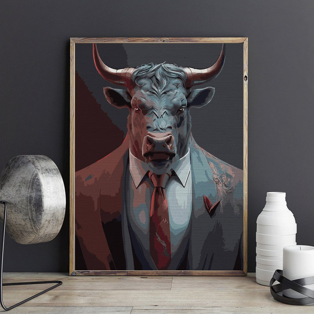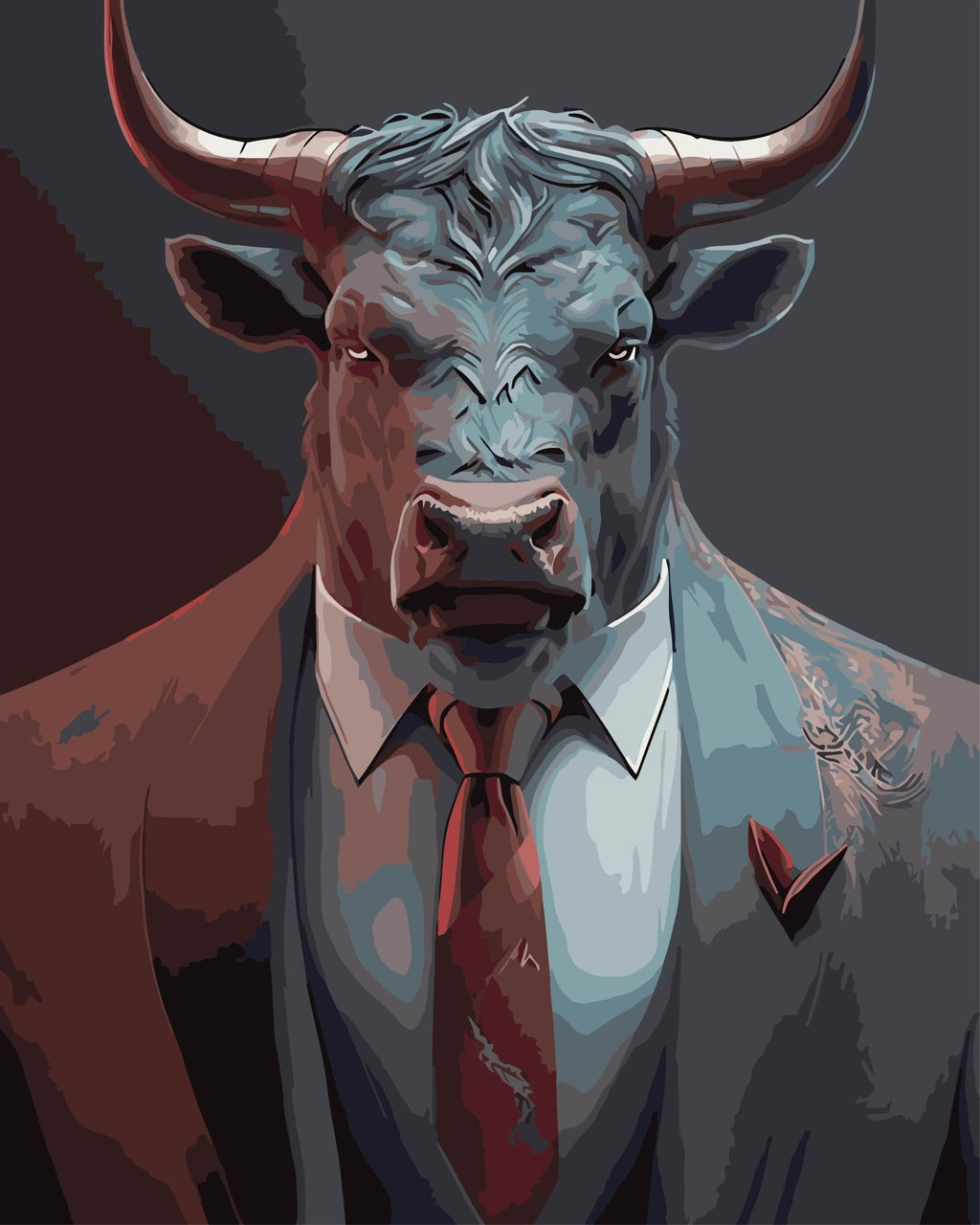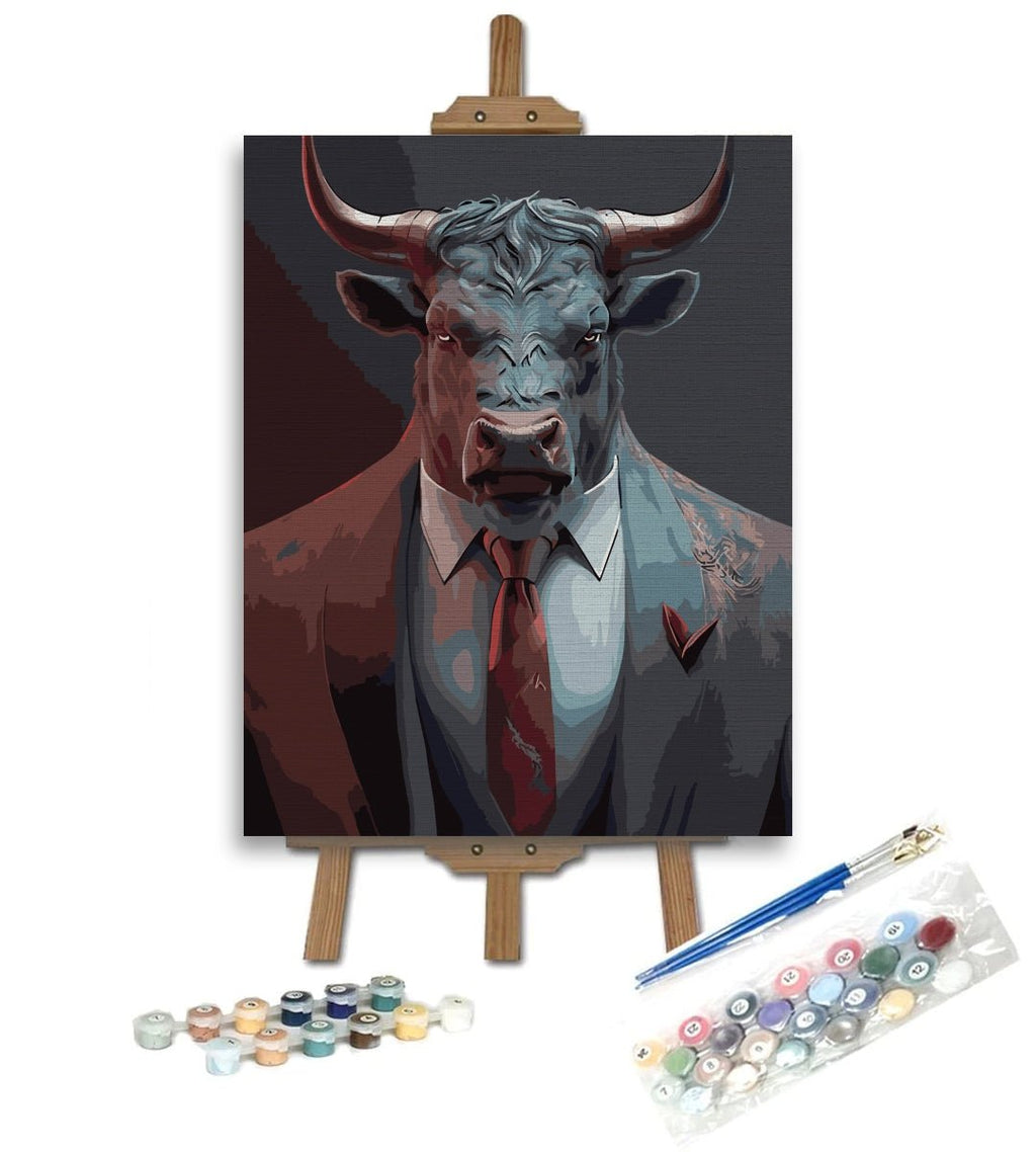 O asociere inedită, o imagine interesantă care surprinde în esența sa ce înseamnă să fii stăpân pe sine în business. Pictura pe numere Formal bull este una din favorite pentru orice bărbat.