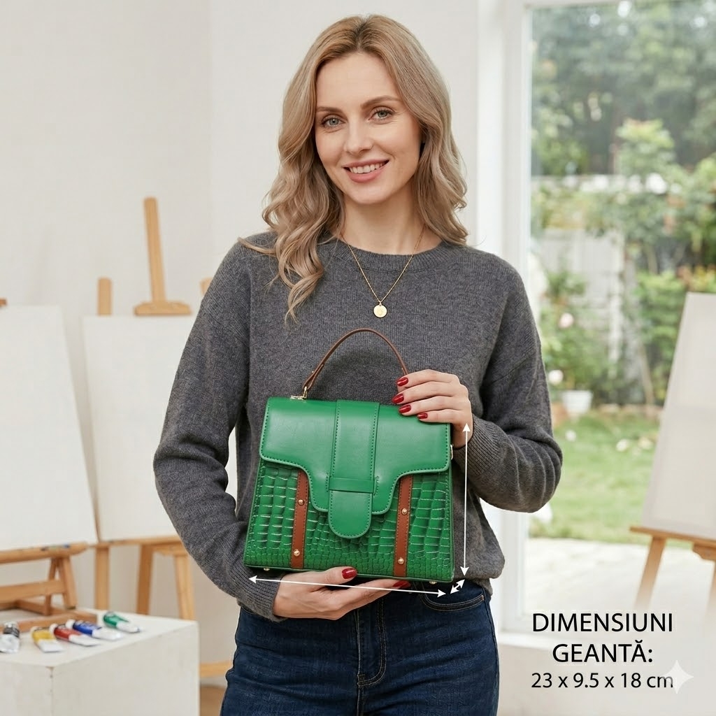 1 compartiment principal; accesorii de culoare aurie; 1 bareta ajustabila si detasabila; material: piele ecologica; greutate: 0.4 kg; sistem inchidere: cu capsa; dimensiuni: 23 x 9.5 x 18 cm. Important : Culoarea produsului poate varia ușor datorită luminozității monitorului. Din cauza varietății instrumentelor de măsură, pot exista ușoare erori de cm.