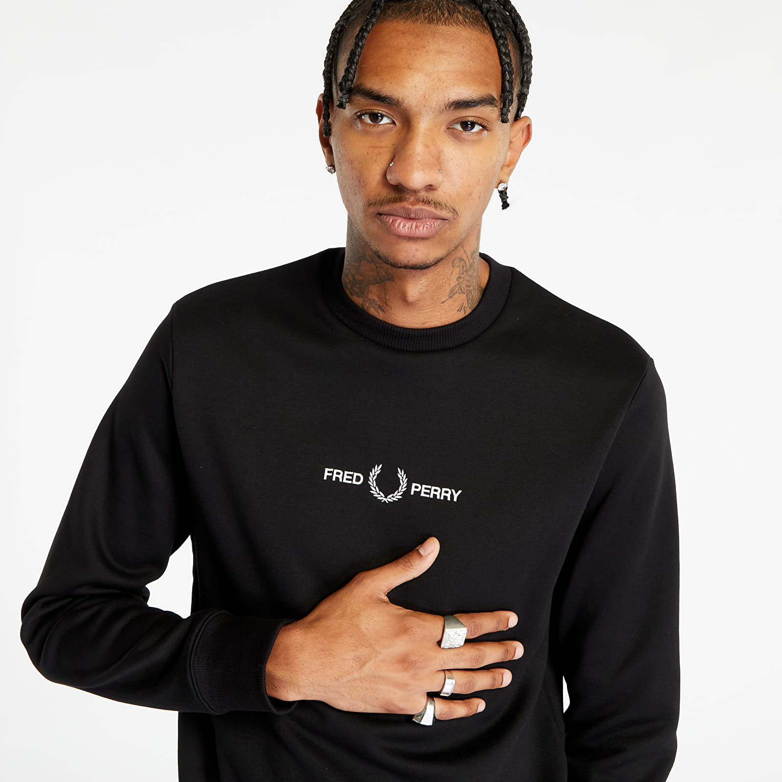 Hanorac FRED PERRY Embroidered Sweatshirt Black pentru 544 lei. Cod produs: M4727 102, material: 34% Bumbac / 66% Poliester