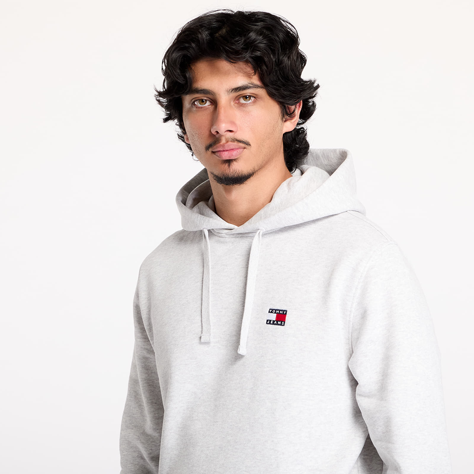 Hanorac Tommy Jeans Regular Badge Hoodie Silver Grey pentru 318 lei. Cod produs: DM0DM17988 PE9, material: 5% Bumbac / 95% Regenerační bavlna