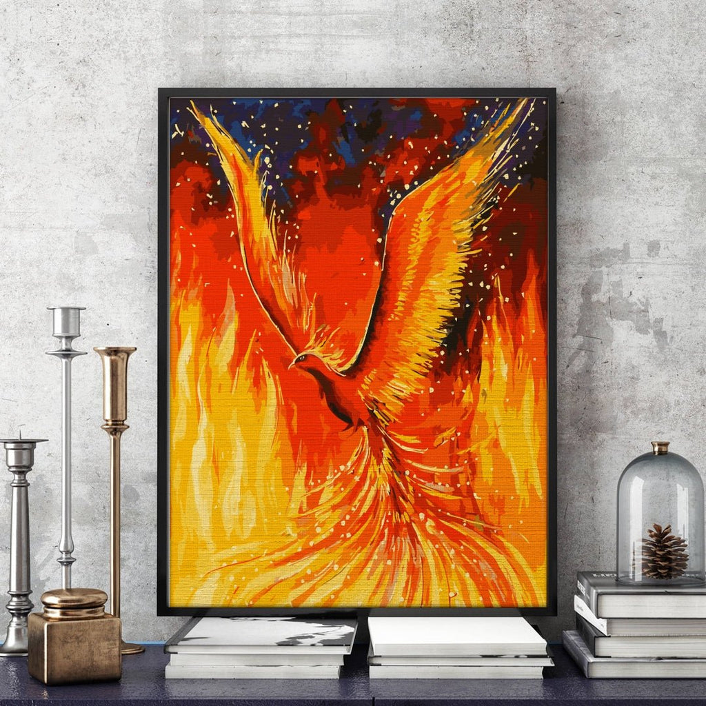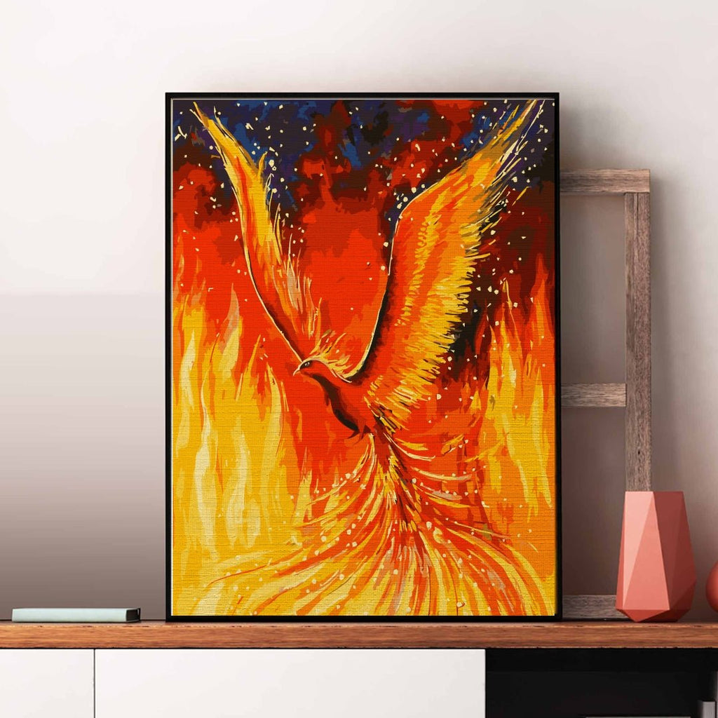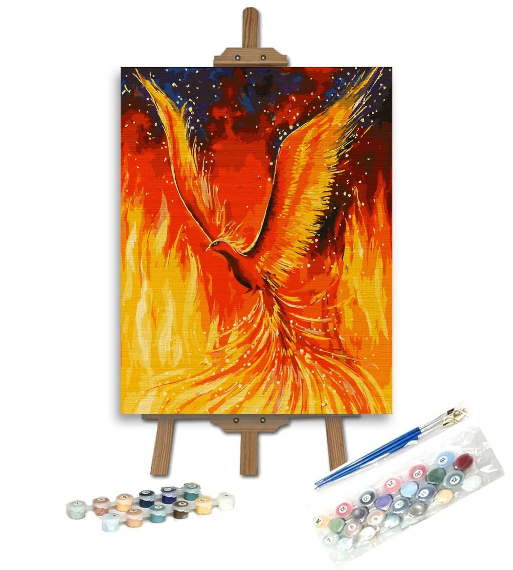Pasărea măiastră scăldată în limbi de foc poate fi pictată cu drag și cu gândul la simbolistica sa. Legenda păsării Pheonix spune că aceasta renaște din propria cenușă. In fire este deci pictura pe numere care să vă amintească de focul prin care treceți pentru transformările de care aveți nevoie.