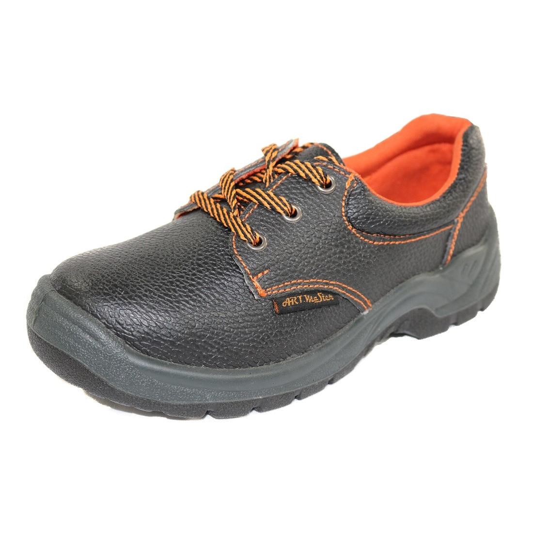Incaltaminte de protectie cu bombeu metalic Superior: PU acoperite cu piele naturala Limba si guler: PU acoperit cu piele Captuseala: ochiurilor de plasa de culoare portocalie Talpa exterioara: dublu strat PU de densitate diversificata de culoare neagra Talpa exterioara rezistenta la ulei, benzina si alti solventi organici Absorbtie de impact sub calcai Bombeu din otel rezistent la impact cu o energie de 200 J si zdrobire de pana la 15 kN