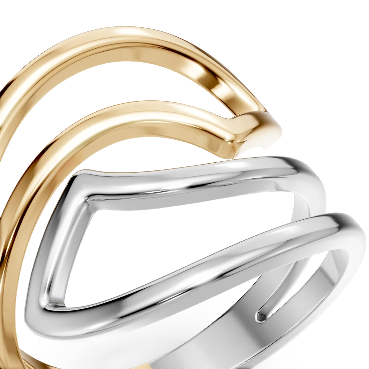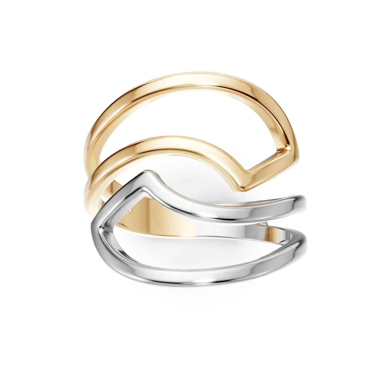 Inelul geometric din aur alb-galben imbina armonios contrastele de culoare cu un design modern, construit din forme fluide si bine definite. Jocul dintre aurul alb si aurul galben evidentiaza structura grafica a bijuteriei, oferind un efect vizual echilibrat si contemporan. Liniile curate si suprapunerile subtile creeaza o piesa usor de purtat, potrivita atat pentru tinutele de zi, cat si pentru combinatii mai elegante. Un inel cu personalitate, care completeaza stiluri minimaliste sau accentueaza aparitii sofisticate prin simplitatea formei si rafinamentul detaliilor. Descopera colectiile TEILOR!