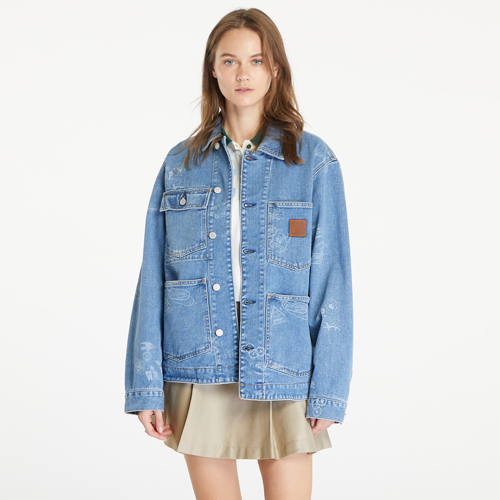 Jacheta Carhartt WIP Stamp Jacket UNISEX Stamp Print/ Blue Bleached pentru 702 lei. Cod produs: I033743.2LN35, material: 100% Bumbac organic