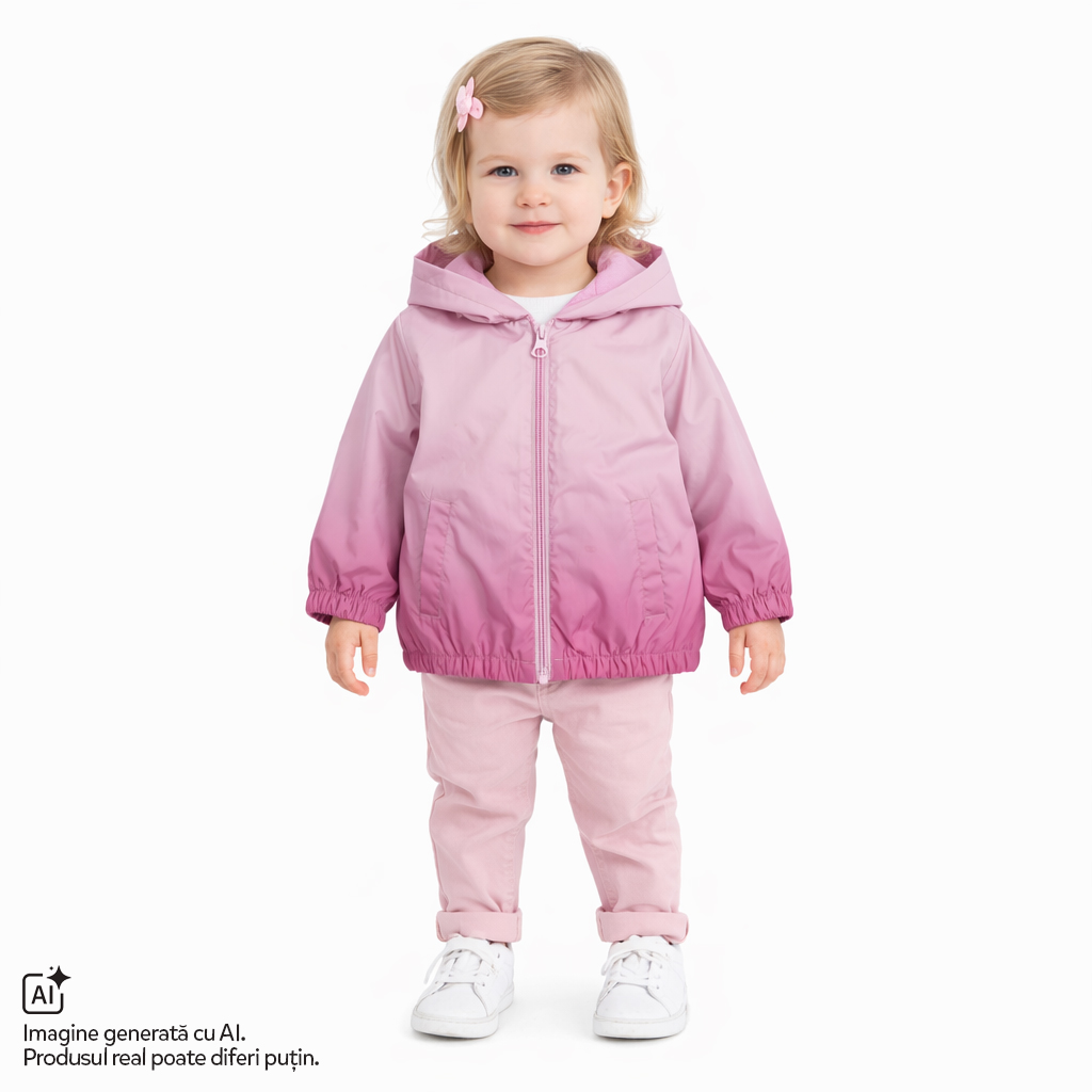 Jacheta cu gluga incorporata si buzunare taiate, confectionata din materiale tehnice care protejeaza de vant si de apa, exteriorul realizat din 100% poliester iar dublura din 65%poliester, 35%bumbac. Modelul este prevazut cu deschidere cu fermoar.