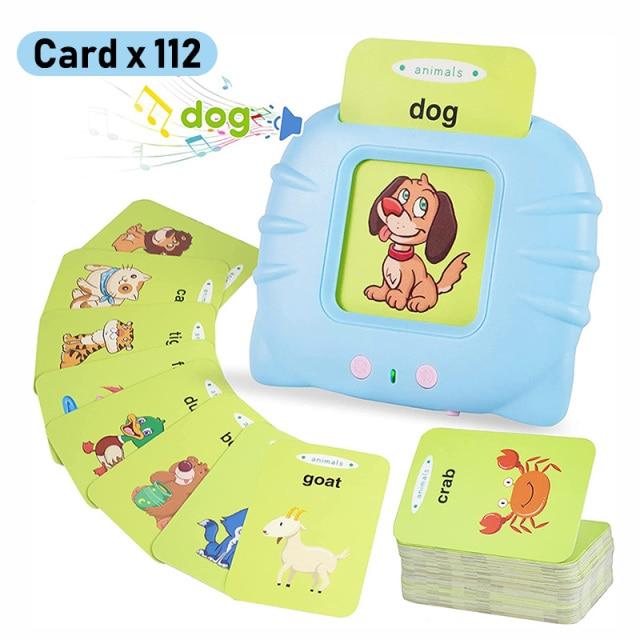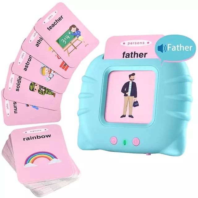 Monitor educativ audio pentru invatarea limbii engleze Culori disponibile: roz si albastru Cartela de iluminare pentru invatare bilingva Carduri audio pentru copii Material: ABS Tensiune: 5V 270mA Rata de putere:1W Baterie Li-ion incorporata: 300 mAh Timp de lucru: 4 ore Incarcare - Cablu USB Carduri 112 bucati fata-verso 224 de imagini din diferite domenii