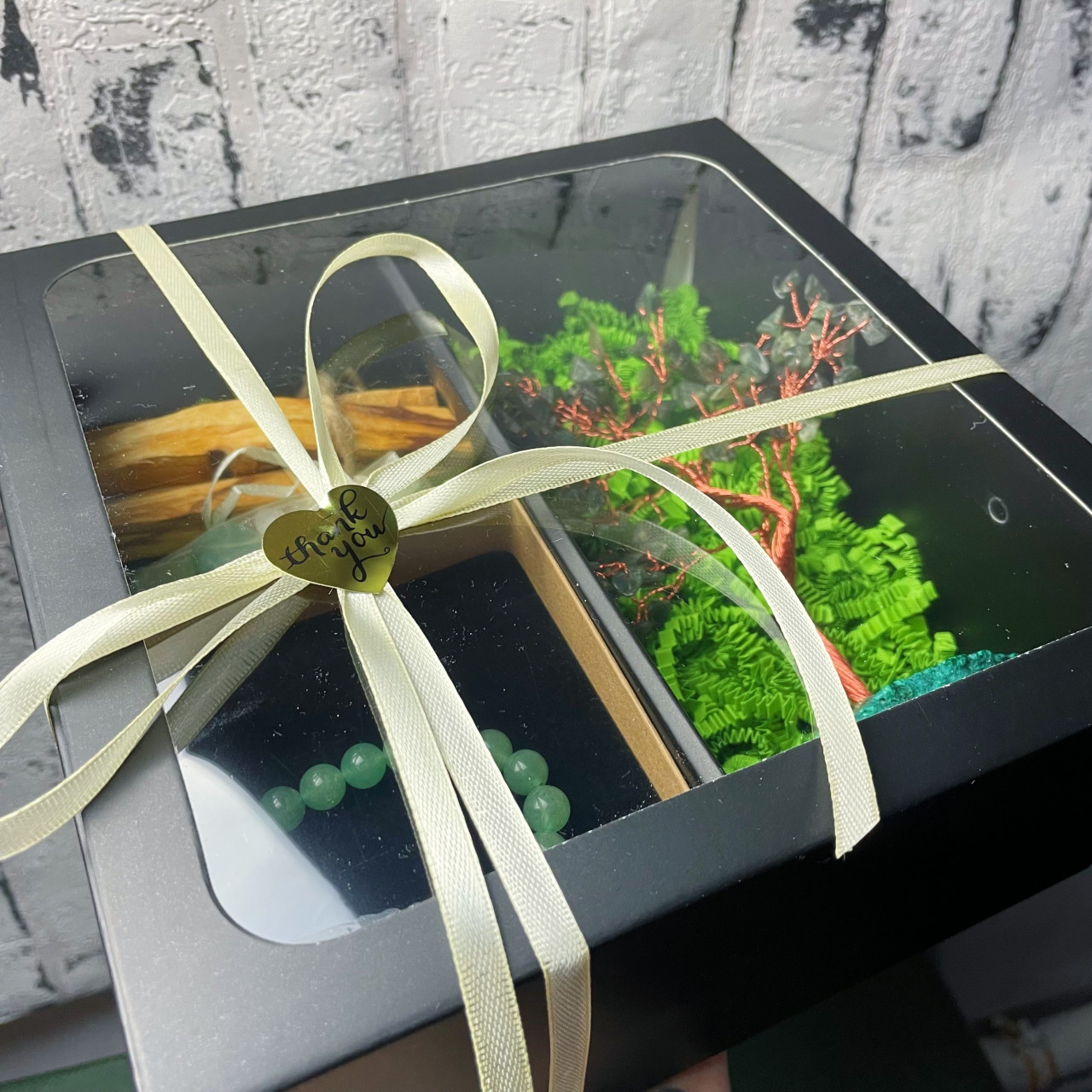 Kit Atragerea Prosperitatii - Aventurin verde Setul include: 1xBratara aventurin verde si cutie de bijuterii 1xCopacel aventurin verde cu baza de agat verde 1xSet de Palo Santo 1xSet de Cristale: Aventurin verde si citrin Cristale 100%naturale Aventurinul verde si citrinul sunt cristale extrem de cunoscute pentru energia lor de atragere a prosperitatii si abundentei financiare! Aventurinul verde - piatra oportrunitatii! Citrinul - piatra succesului! Acestea aduc noroc, bunastare generala si sanse noi de reusita Cadoul perfect pentru orice pasionat de spiritualitate!